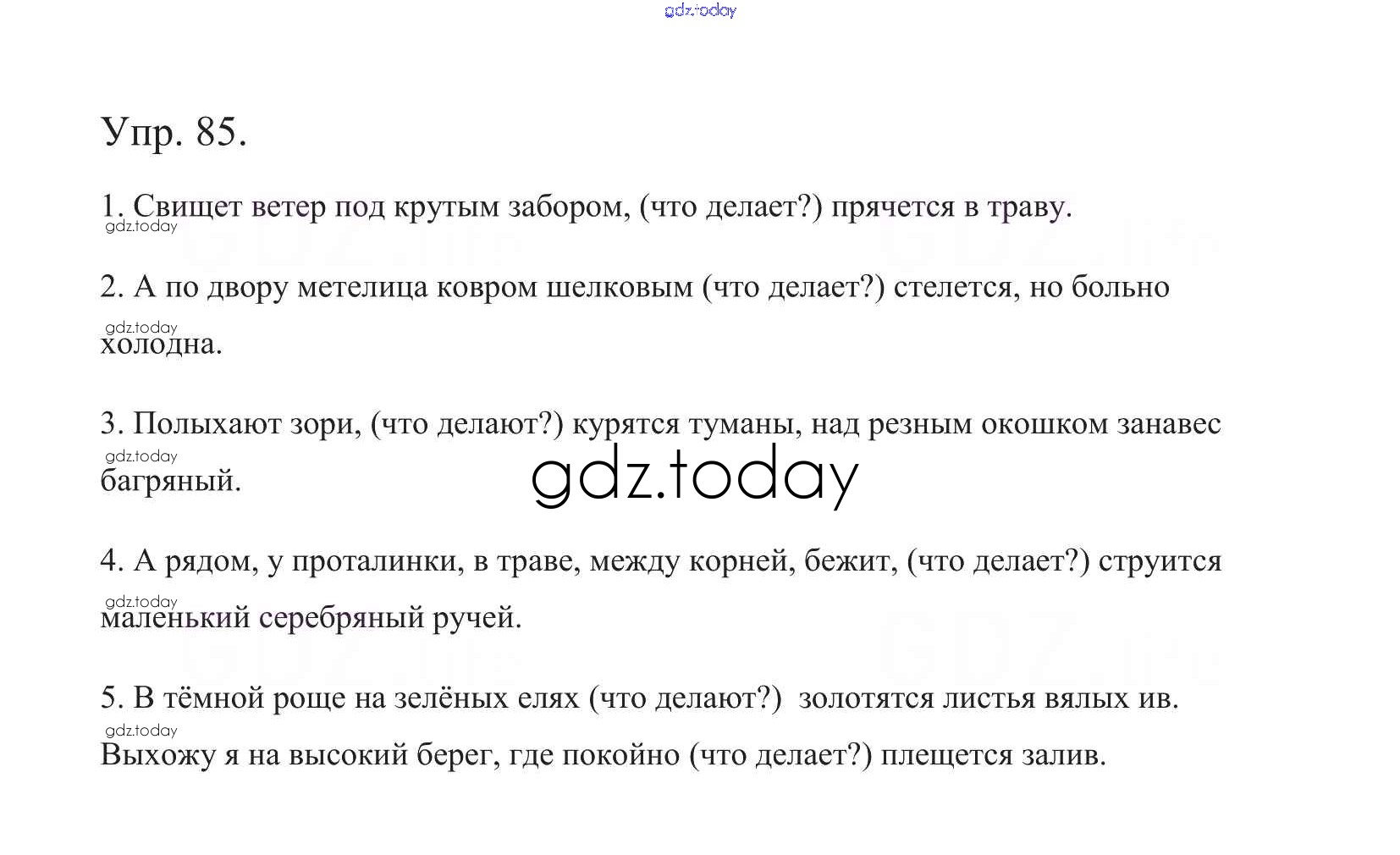 Ответы к Часть 1. Решение к упражнениям 85 Учебнику по Русскому языку для 5 класса Баранов, Ладыженская Просвещение, Просвещение 2016, 2019