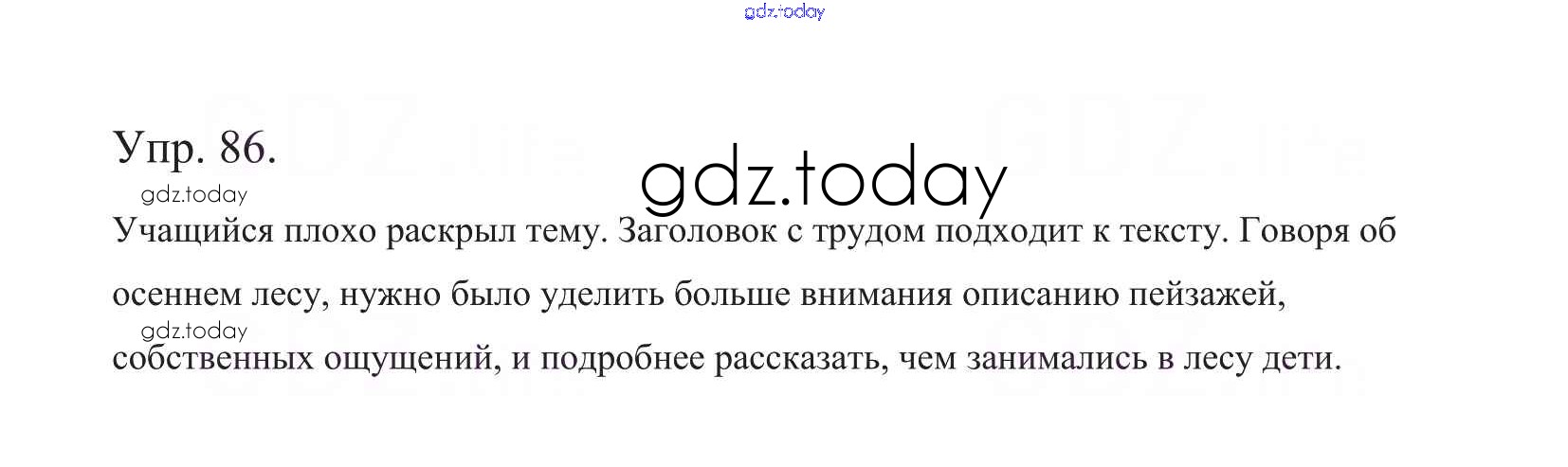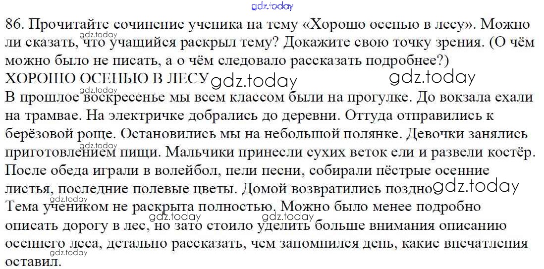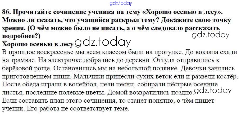На страницах сайта gdz.today вы найдете учебный и вспомогательный материал, направленный на улучшения знаний школьной программы. ГДЗ - онлайн мир знаний Часть 1. Решение к упражнениям 86 Учебнику по Русскому языку для 5 класса Баранов, Ладыженская Просвещение, Просвещение 2016, 2019