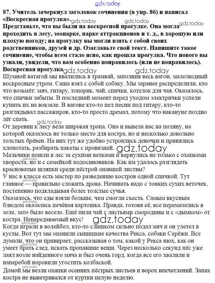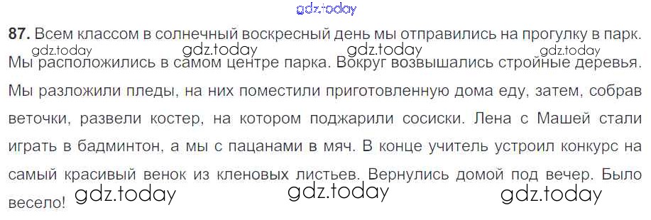 На страницах сайта gdz.today вы найдете учебный и вспомогательный материал, направленный на улучшения знаний школьной программы. ГДЗ - онлайн мир знаний Часть 1. Решение к упражнениям 87 Учебнику по Русскому языку для 5 класса Баранов, Ладыженская Просвещение, Просвещение 2016, 2019
