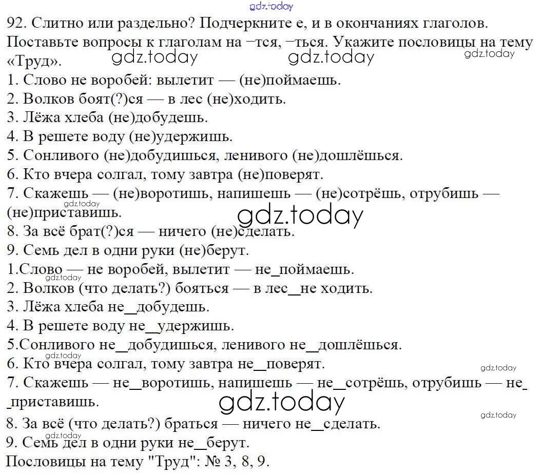 Ответы к Часть 1. Решение к упражнениям 92 Учебнику по Русскому языку для 5 класса Баранов, Ладыженская Просвещение, Просвещение 2016, 2019
