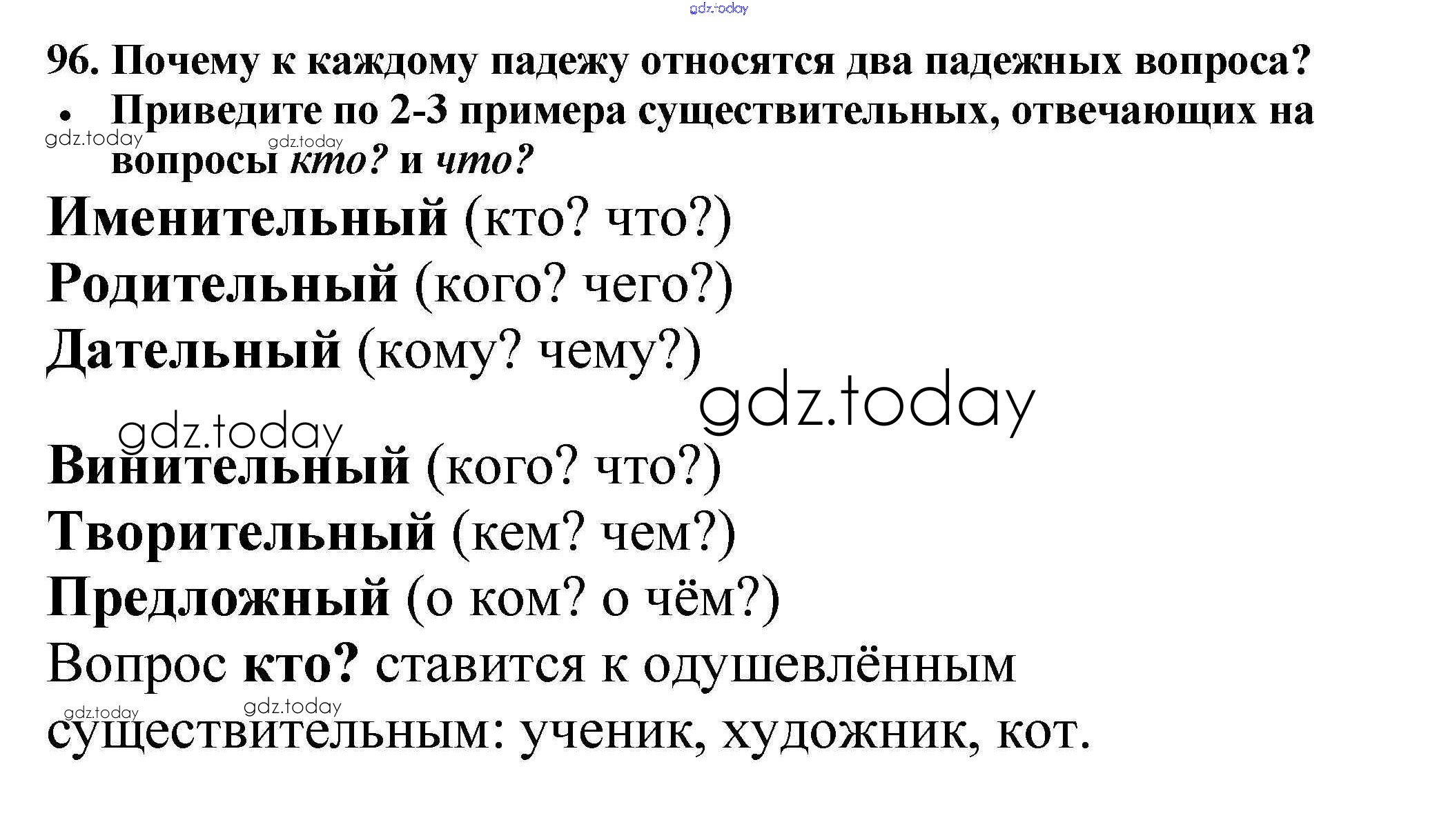 На страницах сайта gdz.today вы найдете учебный и вспомогательный материал, направленный на улучшения знаний школьной программы. ГДЗ - онлайн мир знаний Часть 1. Решение к упражнениям 96 Учебнику по Русскому языку для 5 класса Баранов, Ладыженская Просвещение, Просвещение 2016, 2019