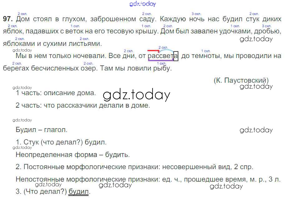 На страницах сайта gdz.today вы найдете учебный и вспомогательный материал, направленный на улучшения знаний школьной программы. ГДЗ - онлайн мир знаний Часть 1. Решение к упражнениям 97 Учебнику по Русскому языку для 5 класса Баранов, Ладыженская Просвещение, Просвещение 2016, 2019