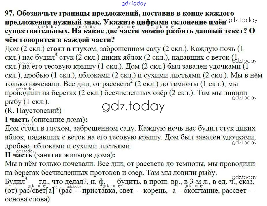 Ответы к Часть 1. Решение к упражнениям 97 Учебнику по Русскому языку для 5 класса Баранов, Ладыженская Просвещение, Просвещение 2016, 2019