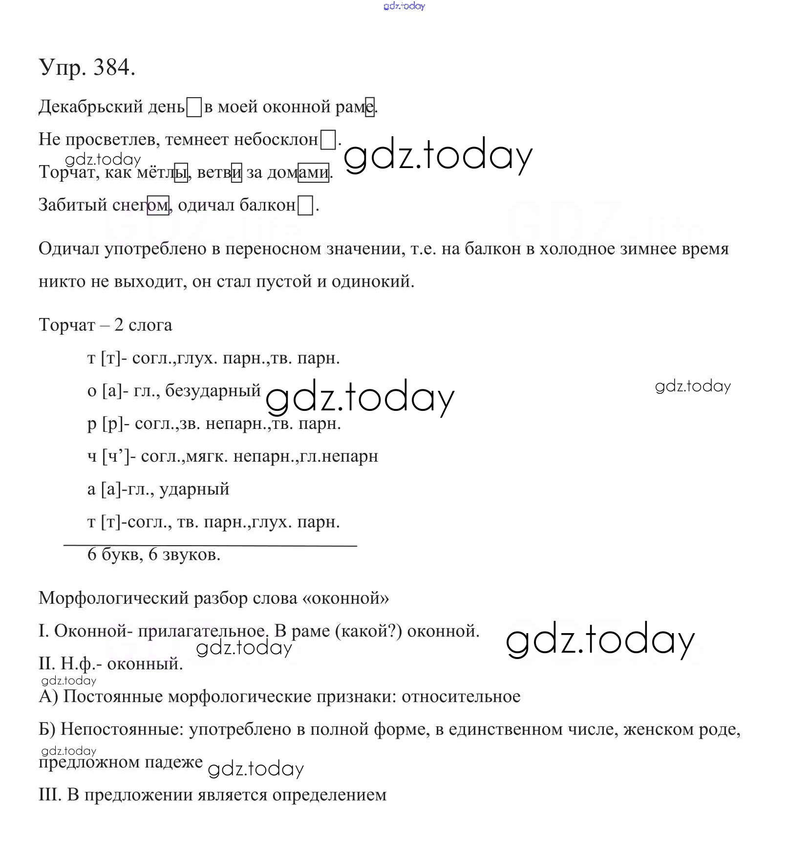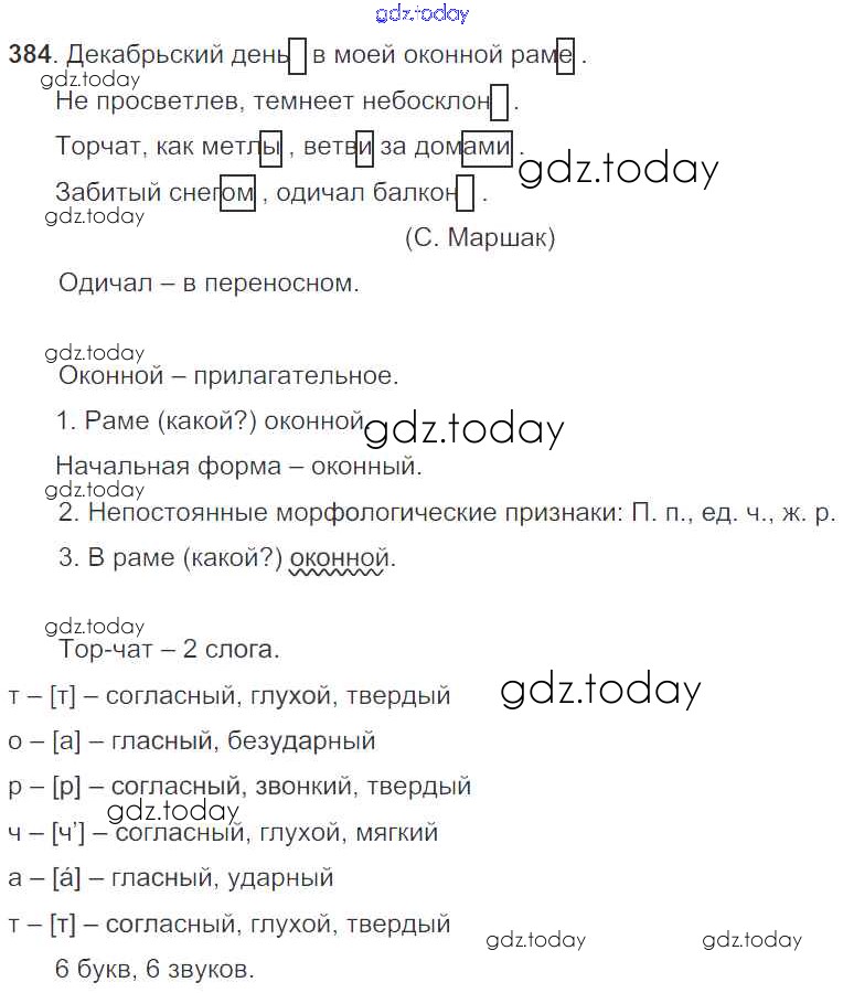 На страницах сайта gdz.today вы найдете учебный и вспомогательный материал, направленный на улучшения знаний школьной программы. ГДЗ - онлайн мир знаний Часть 2. Решение к упражнениям 384 Учебнику по Русскому языку для 5 класса Баранов, Ладыженская Просвещение, Просвещение 2016, 2019