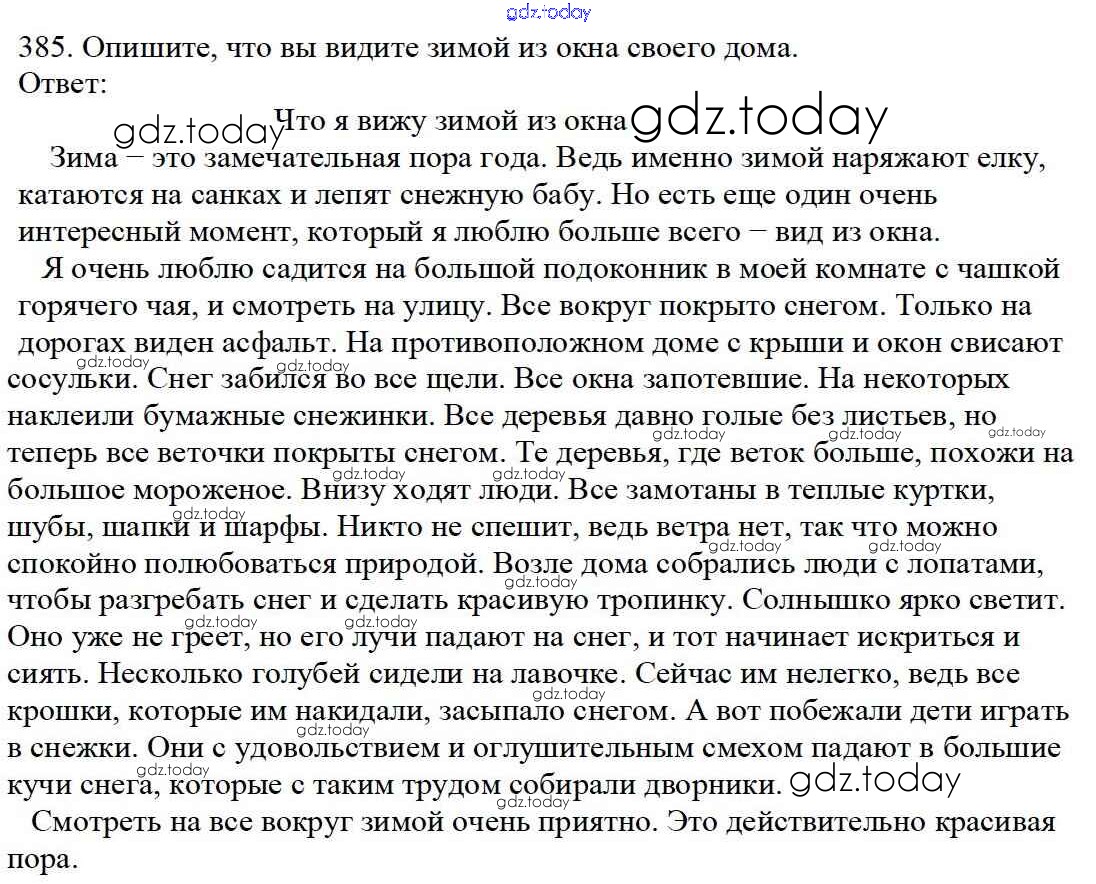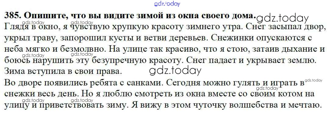 На страницах сайта gdz.today вы найдете учебный и вспомогательный материал, направленный на улучшения знаний школьной программы. ГДЗ - онлайн мир знаний Часть 2. Решение к упражнениям 385 Учебнику по Русскому языку для 5 класса Баранов, Ладыженская Просвещение, Просвещение 2016, 2019