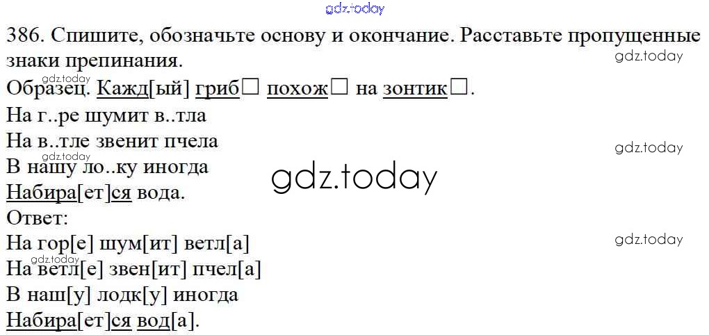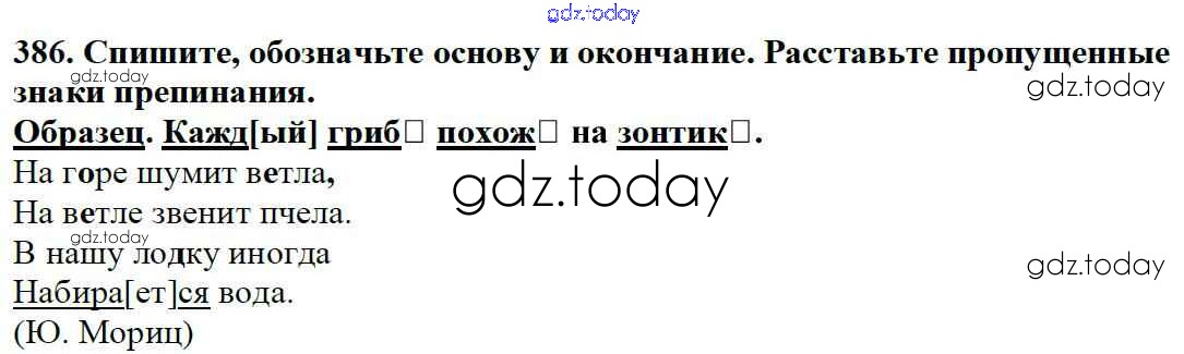 На страницах сайта gdz.today вы найдете учебный и вспомогательный материал, направленный на улучшения знаний школьной программы. ГДЗ - онлайн мир знаний Часть 2. Решение к упражнениям 386 Учебнику по Русскому языку для 5 класса Баранов, Ладыженская Просвещение, Просвещение 2016, 2019