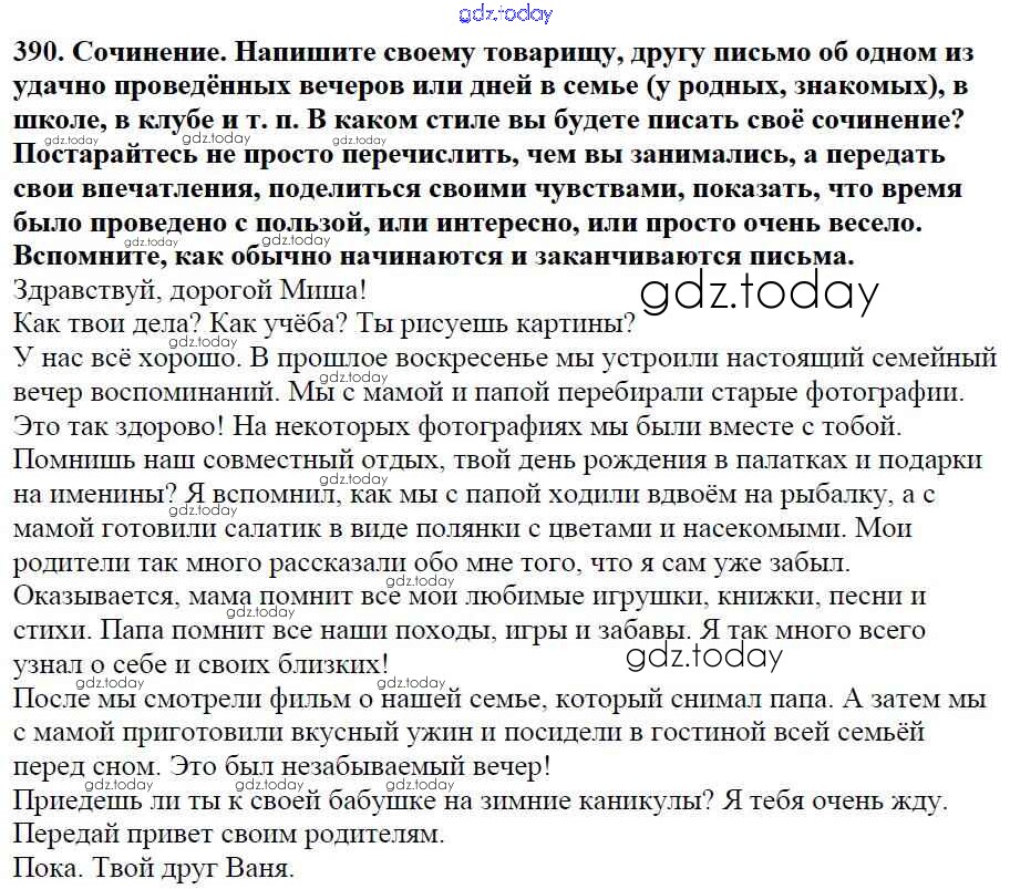 Ответы к Часть 2. Решение к упражнениям 390 Учебнику по Русскому языку для 5 класса Баранов, Ладыженская Просвещение, Просвещение 2016, 2019