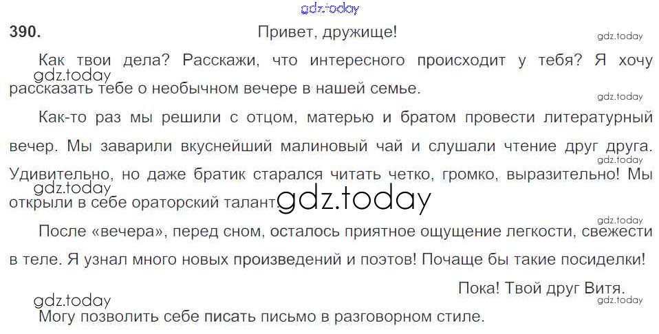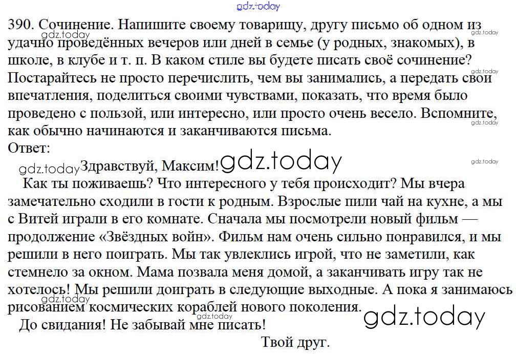 На страницах сайта gdz.today вы найдете учебный и вспомогательный материал, направленный на улучшения знаний школьной программы. ГДЗ - онлайн мир знаний Часть 2. Решение к упражнениям 390 Учебнику по Русскому языку для 5 класса Баранов, Ладыженская Просвещение, Просвещение 2016, 2019