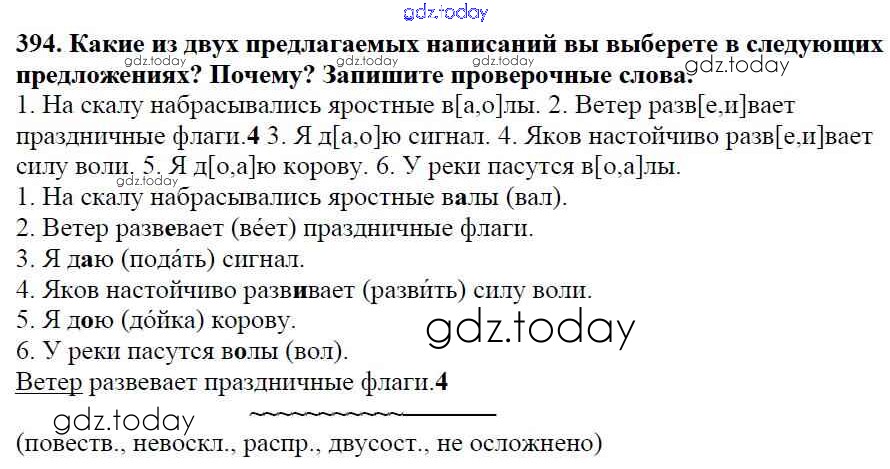Ответы к Часть 2. Решение к упражнениям 394 Учебнику по Русскому языку для 5 класса Баранов, Ладыженская Просвещение, Просвещение 2016, 2019