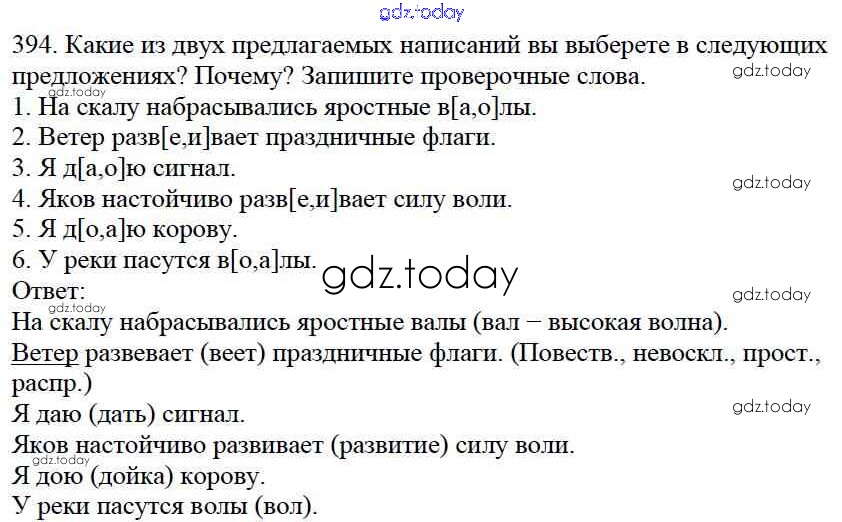 На страницах сайта gdz.today вы найдете учебный и вспомогательный материал, направленный на улучшения знаний школьной программы. ГДЗ - онлайн мир знаний Часть 2. Решение к упражнениям 394 Учебнику по Русскому языку для 5 класса Баранов, Ладыженская Просвещение, Просвещение 2016, 2019