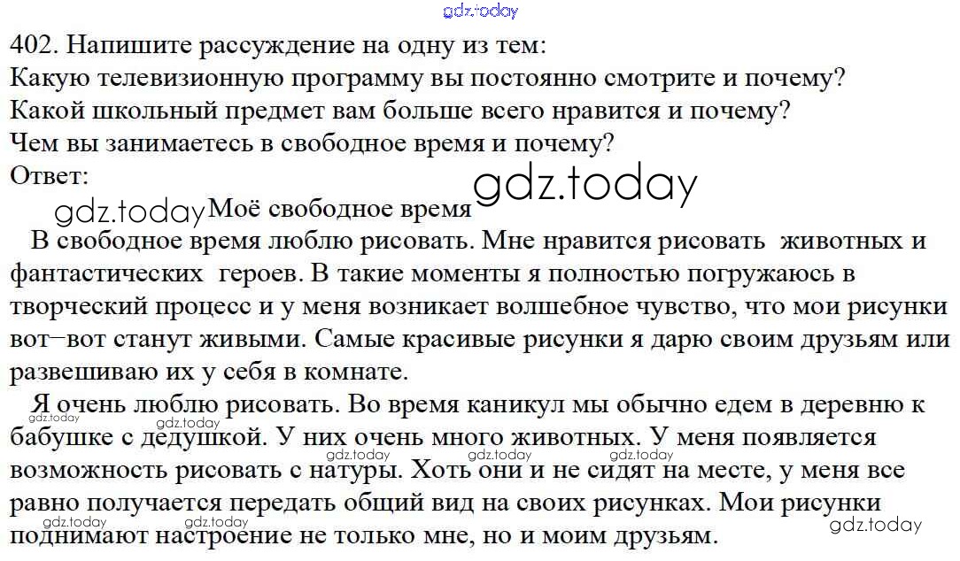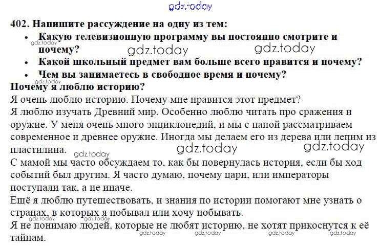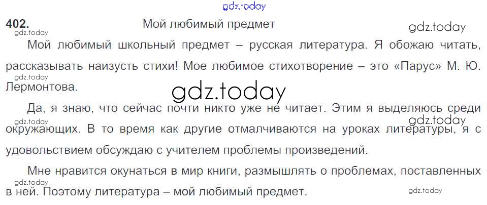 На страницах сайта gdz.today вы найдете учебный и вспомогательный материал, направленный на улучшения знаний школьной программы. ГДЗ - онлайн мир знаний Часть 2. Решение к упражнениям 402 Учебнику по Русскому языку для 5 класса Баранов, Ладыженская Просвещение, Просвещение 2016, 2019