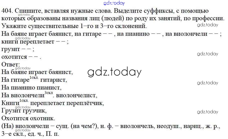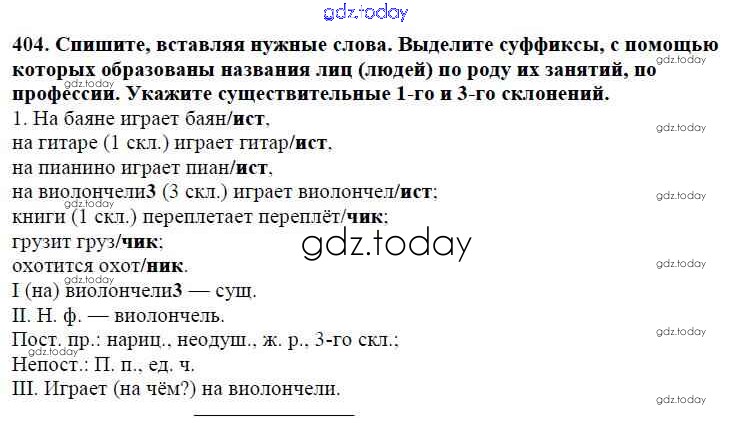 На страницах сайта gdz.today вы найдете учебный и вспомогательный материал, направленный на улучшения знаний школьной программы. ГДЗ - онлайн мир знаний Часть 2. Решение к упражнениям 404 Учебнику по Русскому языку для 5 класса Баранов, Ладыженская Просвещение, Просвещение 2016, 2019