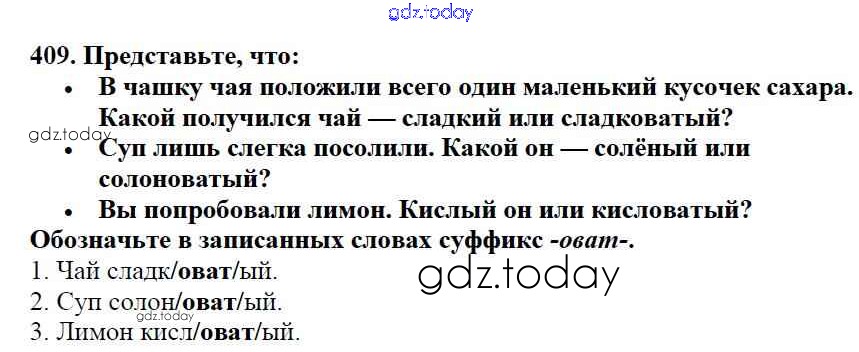 На страницах сайта gdz.today вы найдете учебный и вспомогательный материал, направленный на улучшения знаний школьной программы. ГДЗ - онлайн мир знаний Часть 2. Решение к упражнениям 409 Учебнику по Русскому языку для 5 класса Баранов, Ладыженская Просвещение, Просвещение 2016, 2019