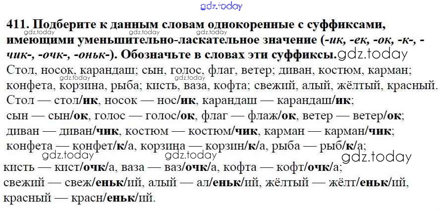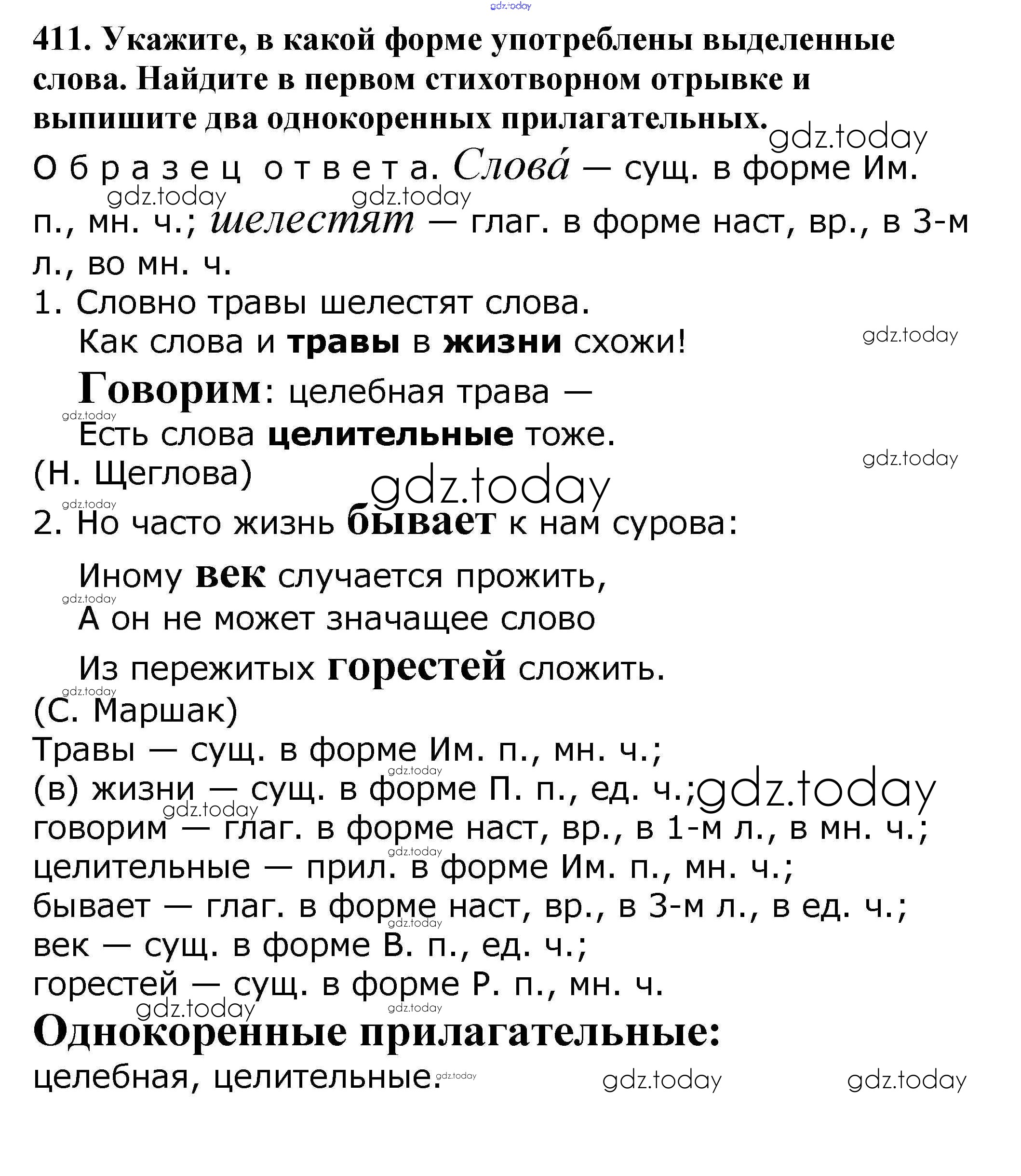 Ответы к Часть 2. Решение к упражнениям 411 Учебнику по Русскому языку для 5 класса Баранов, Ладыженская Просвещение, Просвещение 2016, 2019