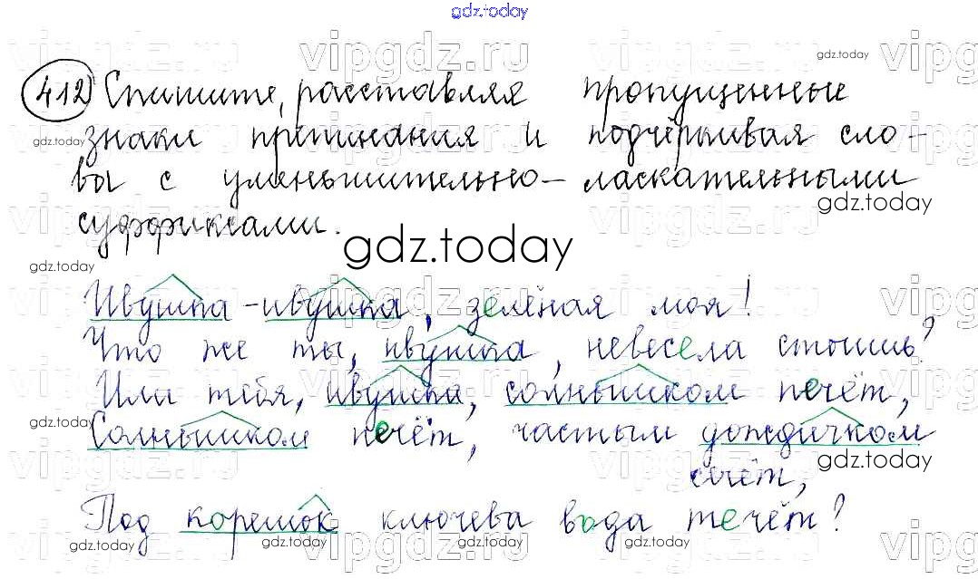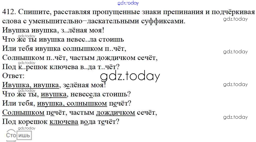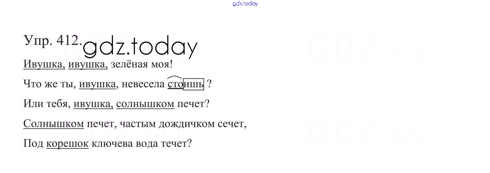 На страницах сайта gdz.today вы найдете учебный и вспомогательный материал, направленный на улучшения знаний школьной программы. ГДЗ - онлайн мир знаний Часть 2. Решение к упражнениям 412 Учебнику по Русскому языку для 5 класса Баранов, Ладыженская Просвещение, Просвещение 2016, 2019