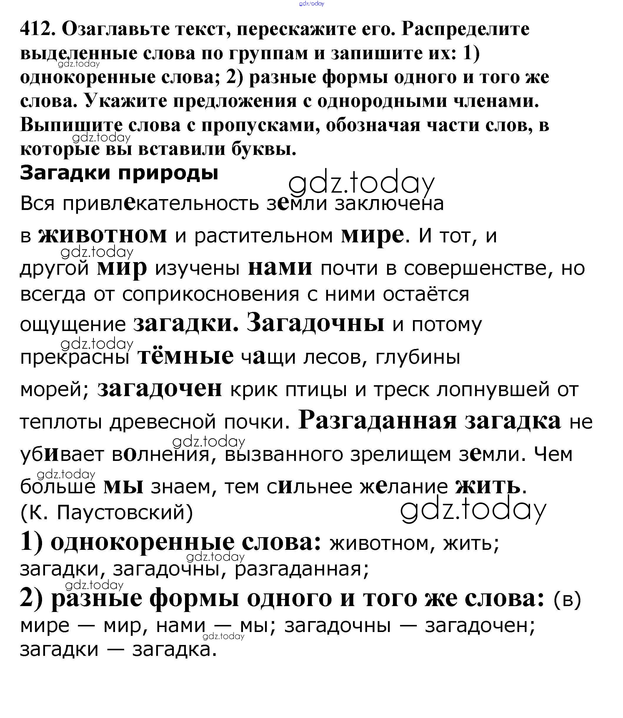 Ответы к Часть 2. Решение к упражнениям 412 Учебнику по Русскому языку для 5 класса Баранов, Ладыженская Просвещение, Просвещение 2016, 2019