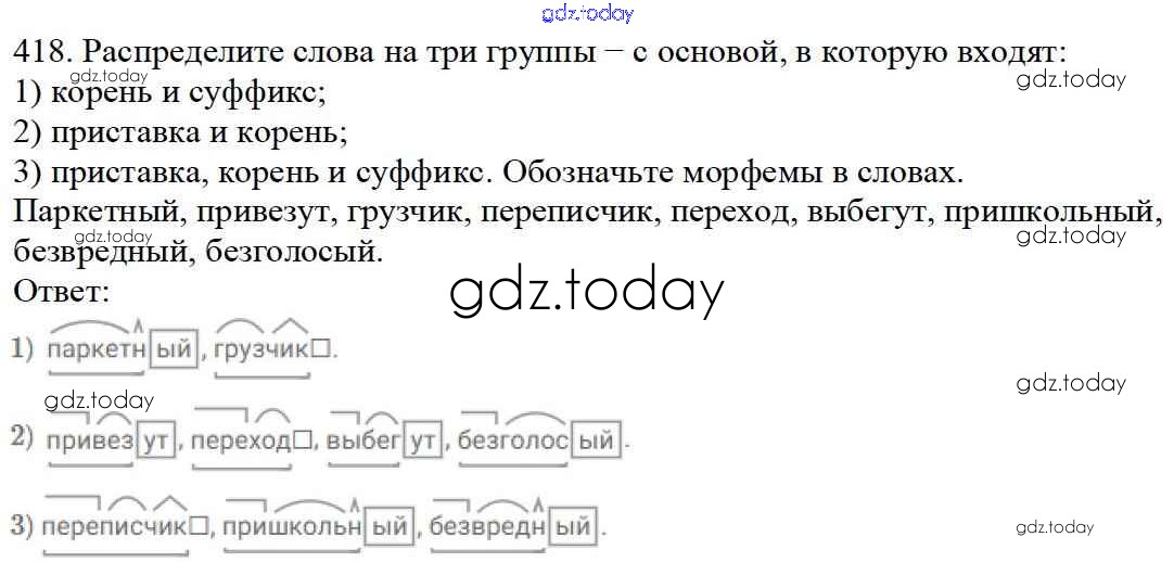 На страницах сайта gdz.today вы найдете учебный и вспомогательный материал, направленный на улучшения знаний школьной программы. ГДЗ - онлайн мир знаний Часть 2. Решение к упражнениям 418 Учебнику по Русскому языку для 5 класса Баранов, Ладыженская Просвещение, Просвещение 2016, 2019