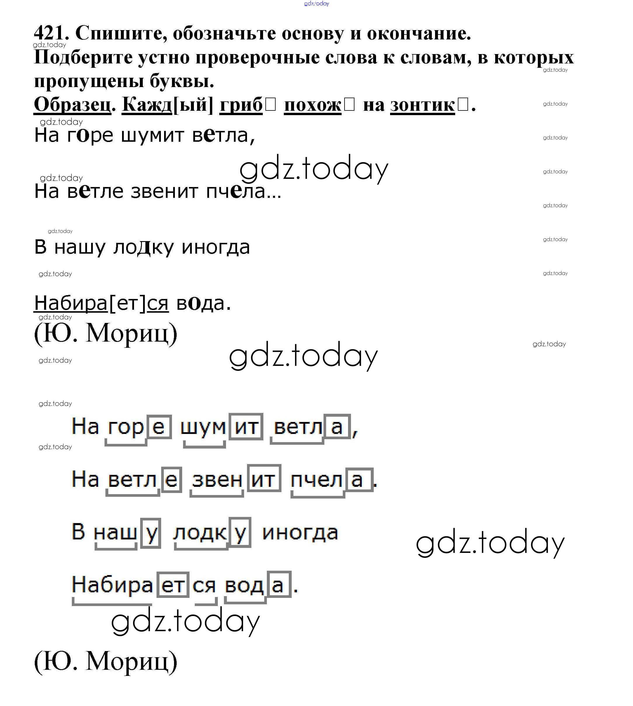 На страницах сайта gdz.today вы найдете учебный и вспомогательный материал, направленный на улучшения знаний школьной программы. ГДЗ - онлайн мир знаний Часть 2. Решение к упражнениям 421 Учебнику по Русскому языку для 5 класса Баранов, Ладыженская Просвещение, Просвещение 2016, 2019