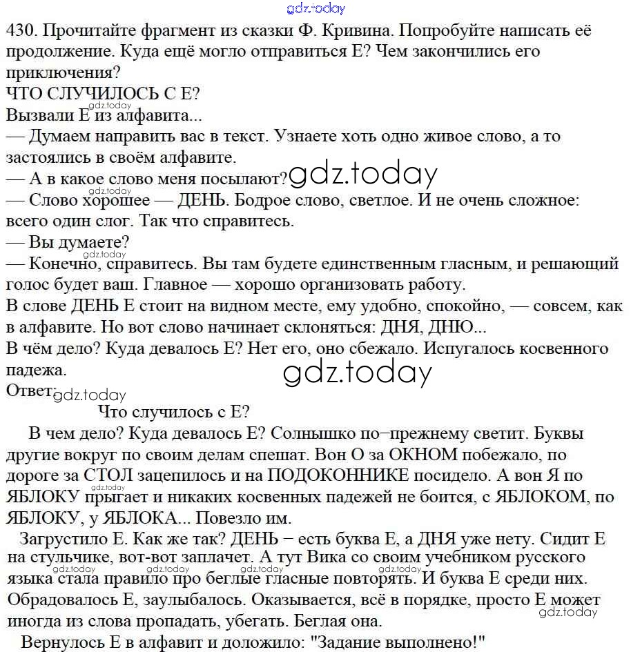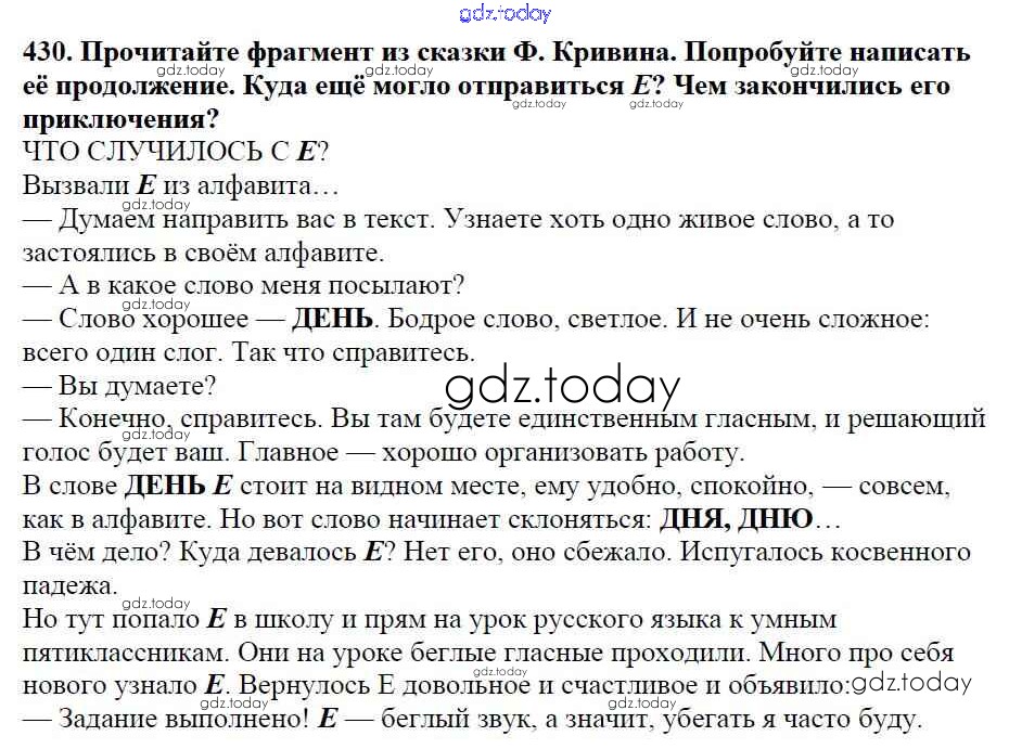 Ответы к Часть 2. Решение к упражнениям 430 Учебнику по Русскому языку для 5 класса Баранов, Ладыженская Просвещение, Просвещение 2016, 2019