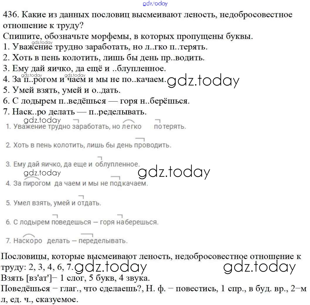 Ответы к Часть 2. Решение к упражнениям 436 Учебнику по Русскому языку для 5 класса Баранов, Ладыженская Просвещение, Просвещение 2016, 2019