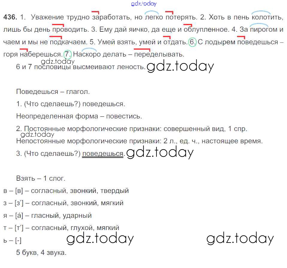 На страницах сайта gdz.today вы найдете учебный и вспомогательный материал, направленный на улучшения знаний школьной программы. ГДЗ - онлайн мир знаний Часть 2. Решение к упражнениям 436 Учебнику по Русскому языку для 5 класса Баранов, Ладыженская Просвещение, Просвещение 2016, 2019