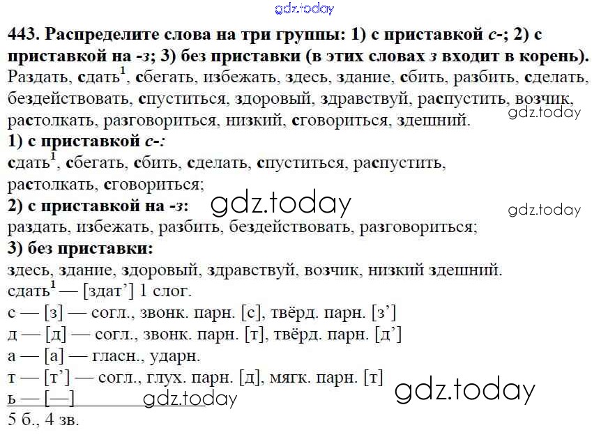 Ответы к Часть 2. Решение к упражнениям 443 Учебнику по Русскому языку для 5 класса Баранов, Ладыженская Просвещение, Просвещение 2016, 2019