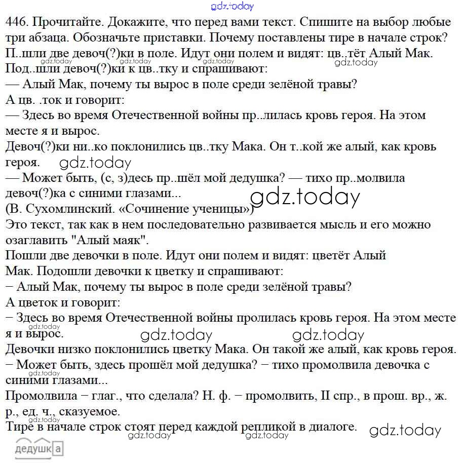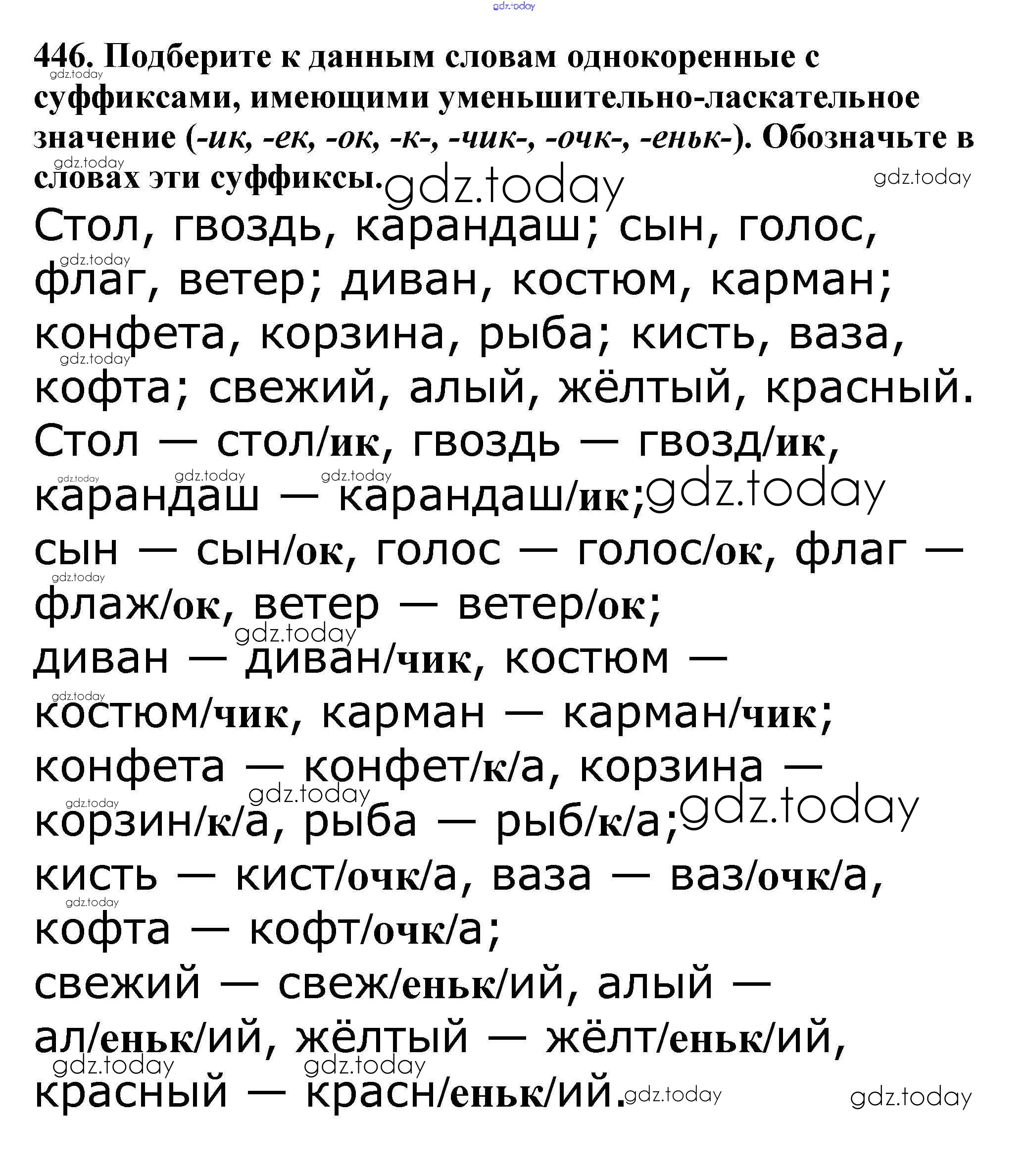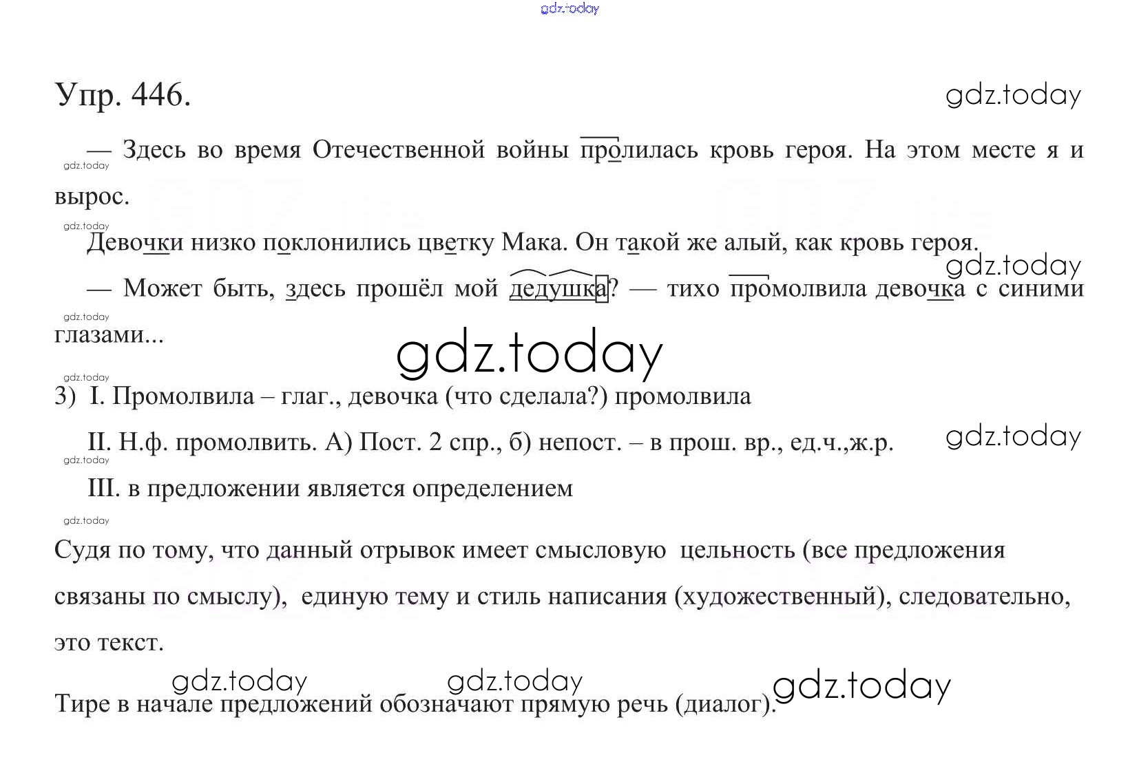 Ответы к Часть 2. Решение к упражнениям 446 Учебнику по Русскому языку для 5 класса Баранов, Ладыженская Просвещение, Просвещение 2016, 2019