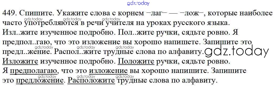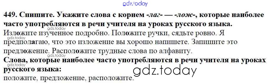 Ответы к Часть 2. Решение к упражнениям 449 Учебнику по Русскому языку для 5 класса Баранов, Ладыженская Просвещение, Просвещение 2016, 2019