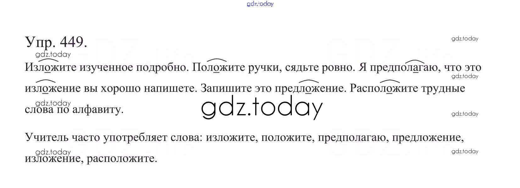 На страницах сайта gdz.today вы найдете учебный и вспомогательный материал, направленный на улучшения знаний школьной программы. ГДЗ - онлайн мир знаний Часть 2. Решение к упражнениям 449 Учебнику по Русскому языку для 5 класса Баранов, Ладыженская Просвещение, Просвещение 2016, 2019