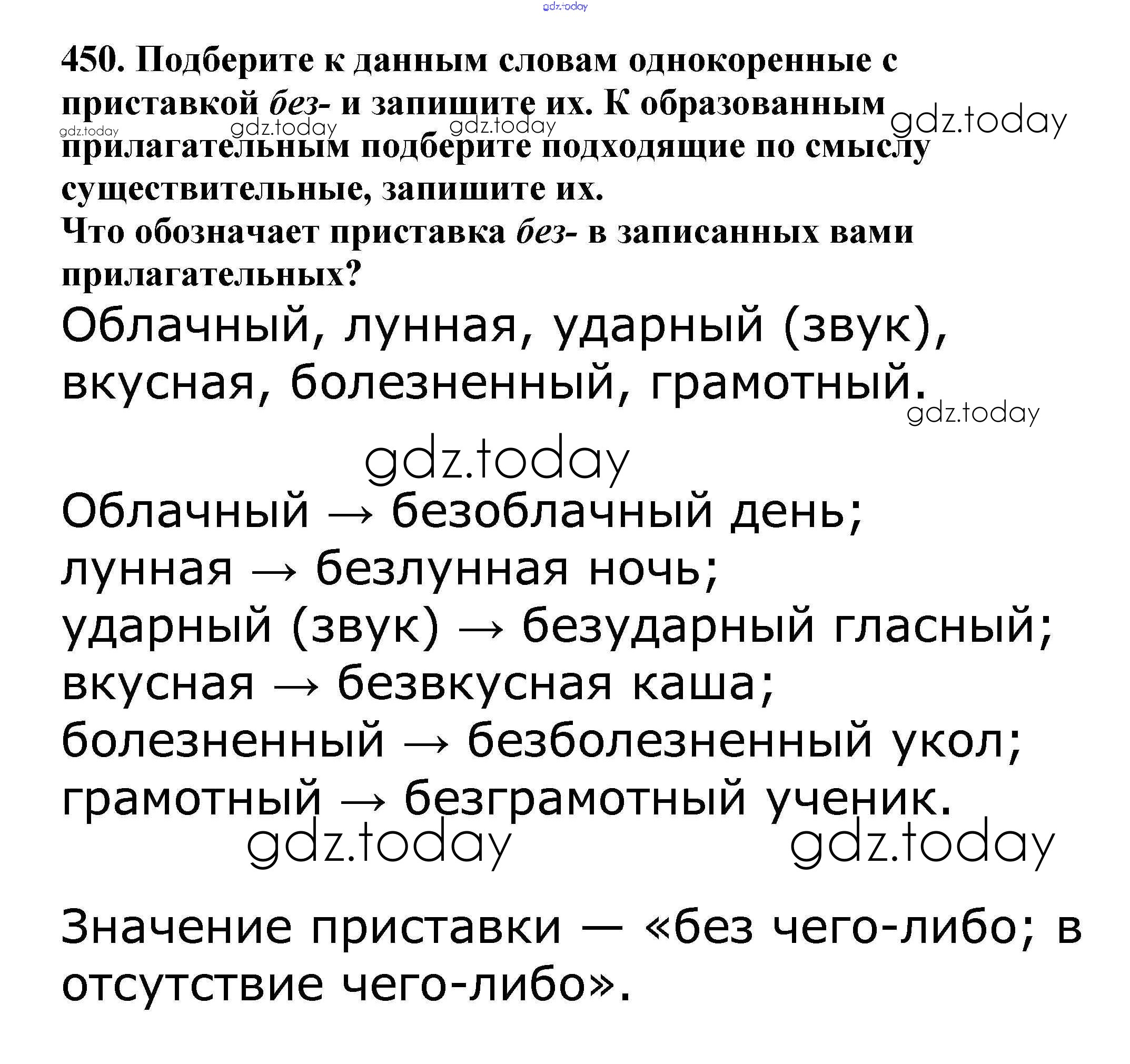 Ответы к Часть 2. Решение к упражнениям 450 Учебнику по Русскому языку для 5 класса Баранов, Ладыженская Просвещение, Просвещение 2016, 2019