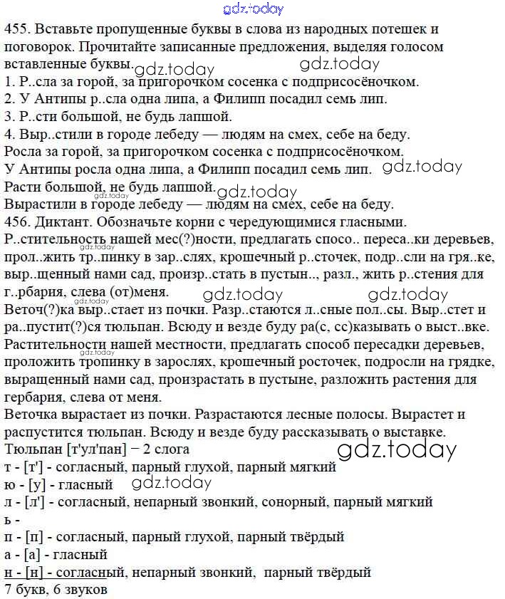 На страницах сайта gdz.today вы найдете учебный и вспомогательный материал, направленный на улучшения знаний школьной программы. ГДЗ - онлайн мир знаний Часть 2. Решение к упражнениям 455 Учебнику по Русскому языку для 5 класса Баранов, Ладыженская Просвещение, Просвещение 2016, 2019