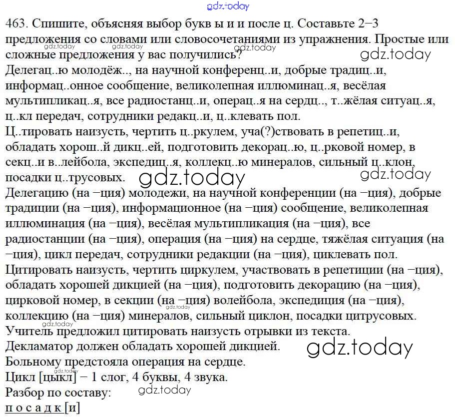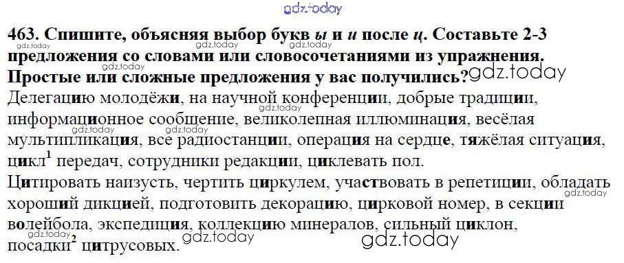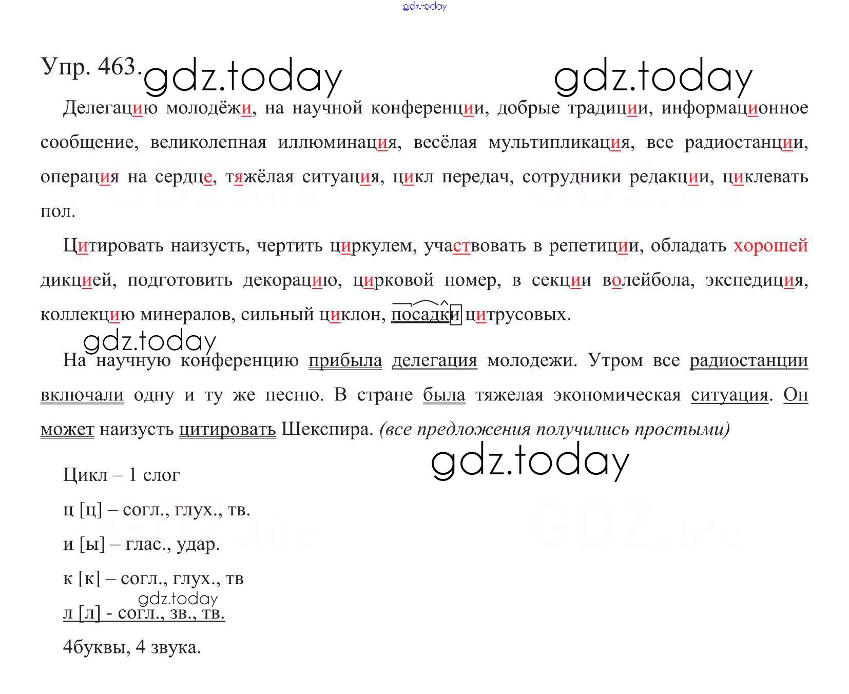 Ответы к Часть 2. Решение к упражнениям 463 Учебнику по Русскому языку для 5 класса Баранов, Ладыженская Просвещение, Просвещение 2016, 2019