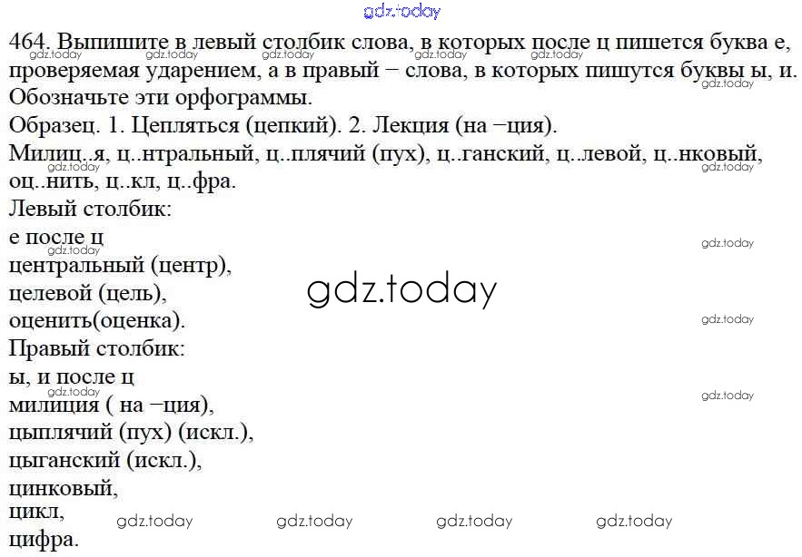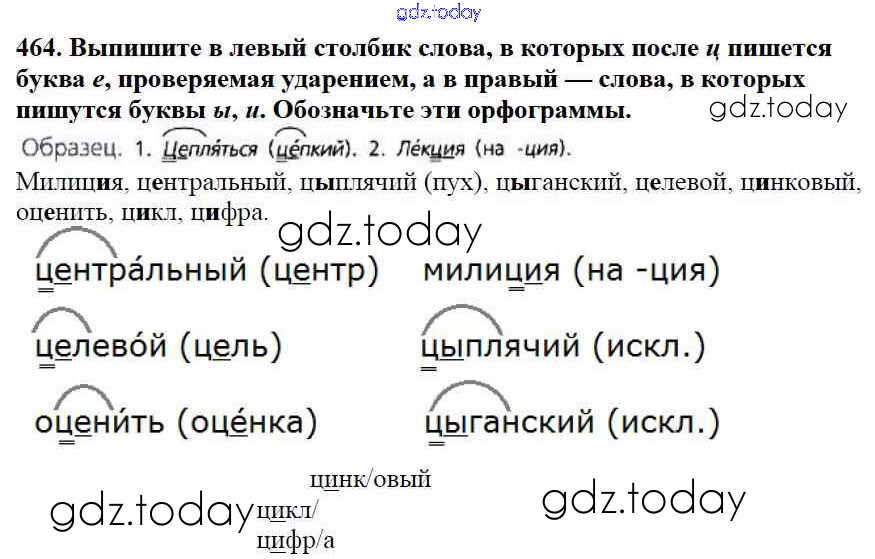 Ответы к Часть 2. Решение к упражнениям 464 Учебнику по Русскому языку для 5 класса Баранов, Ладыженская Просвещение, Просвещение 2016, 2019