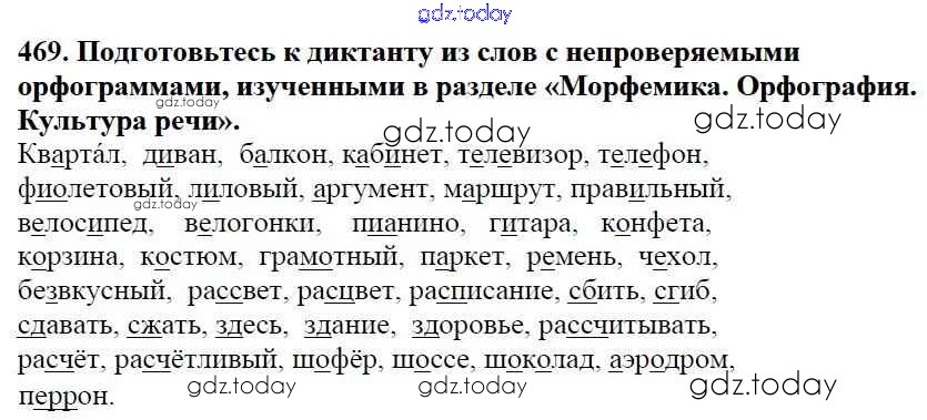 На страницах сайта gdz.today вы найдете учебный и вспомогательный материал, направленный на улучшения знаний школьной программы. ГДЗ - онлайн мир знаний Часть 2. Решение к упражнениям 469 Учебнику по Русскому языку для 5 класса Баранов, Ладыженская Просвещение, Просвещение 2016, 2019
