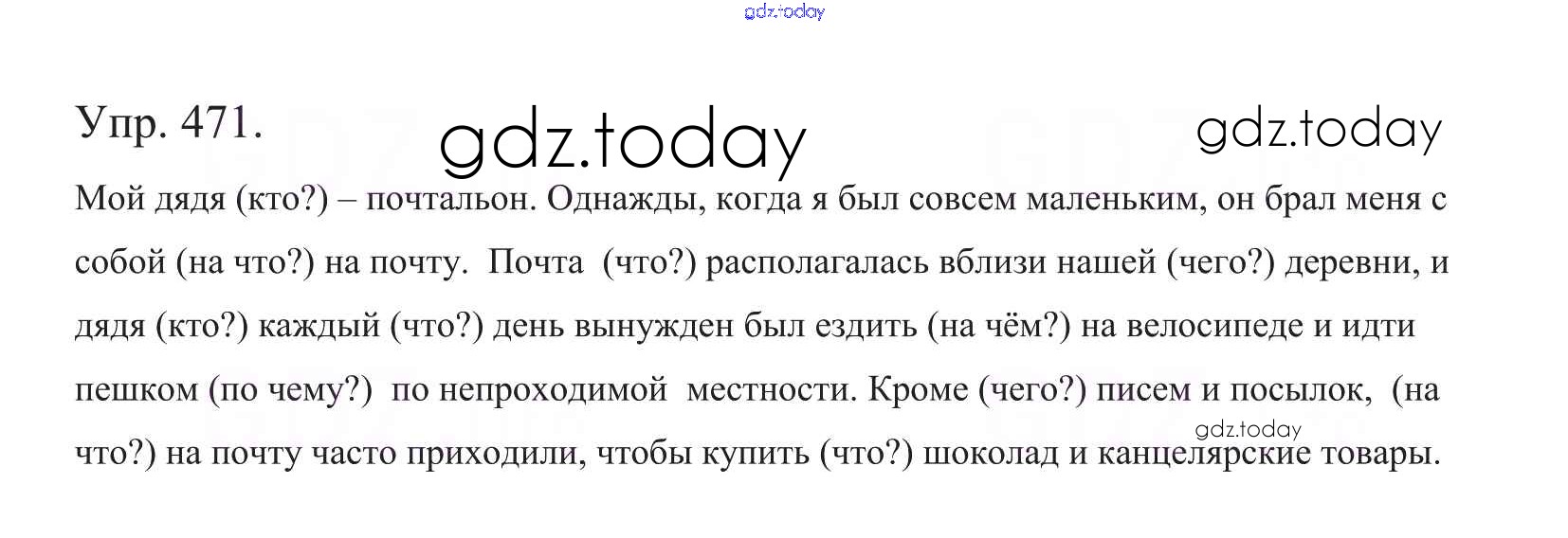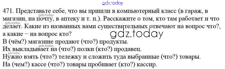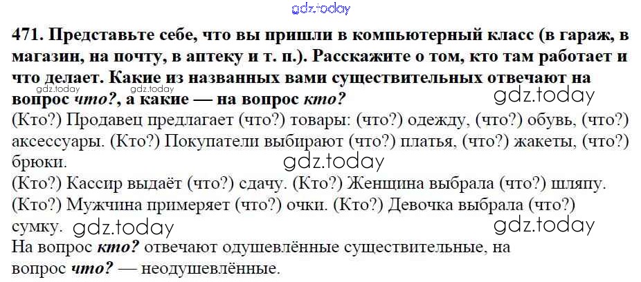 На страницах сайта gdz.today вы найдете учебный и вспомогательный материал, направленный на улучшения знаний школьной программы. ГДЗ - онлайн мир знаний Часть 2. Решение к упражнениям 471 Учебнику по Русскому языку для 5 класса Баранов, Ладыженская Просвещение, Просвещение 2016, 2019