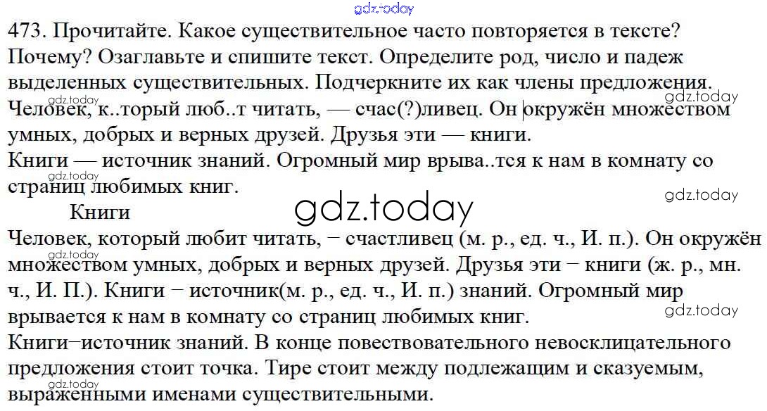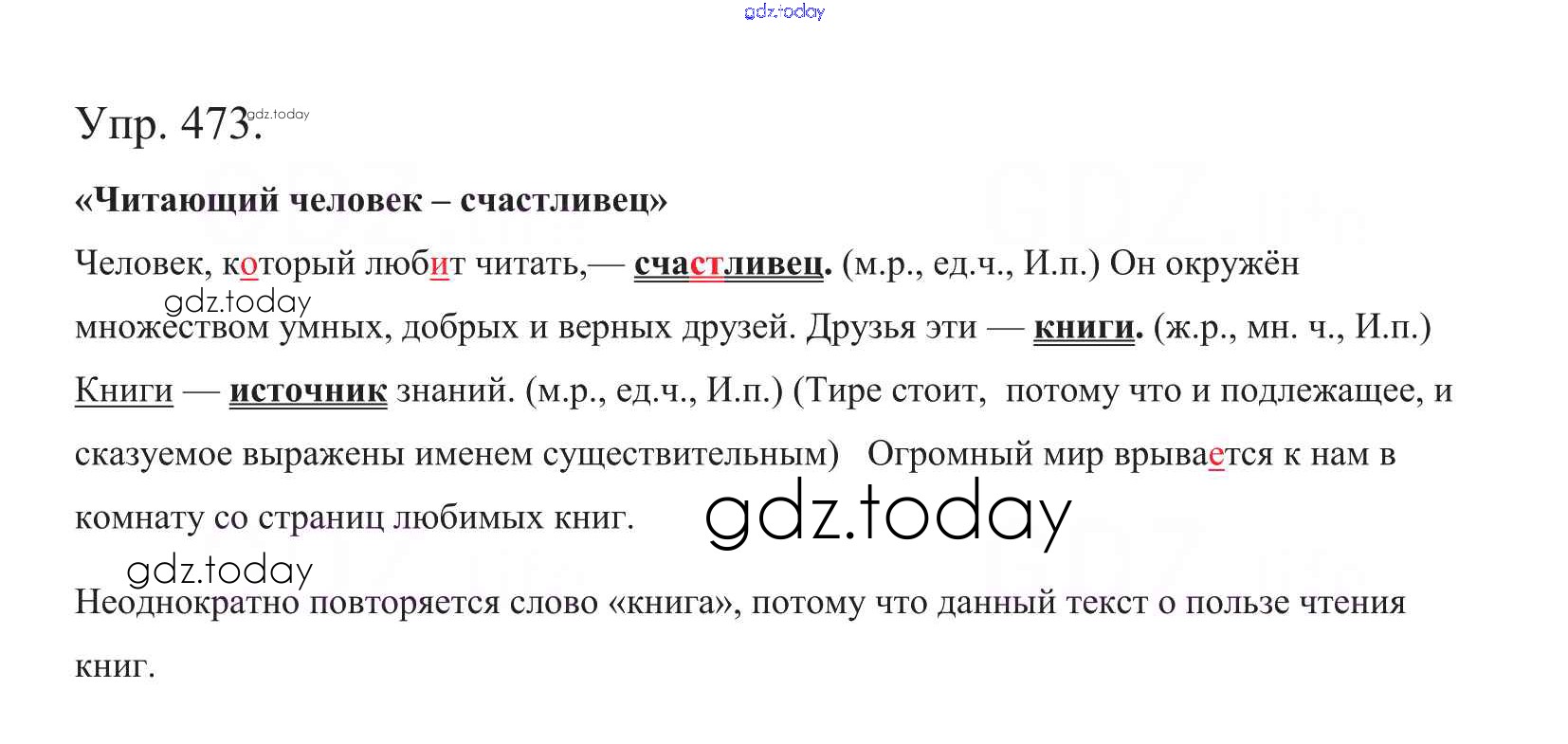 На страницах сайта gdz.today вы найдете учебный и вспомогательный материал, направленный на улучшения знаний школьной программы. ГДЗ - онлайн мир знаний Часть 2. Решение к упражнениям 473 Учебнику по Русскому языку для 5 класса Баранов, Ладыженская Просвещение, Просвещение 2016, 2019