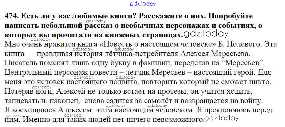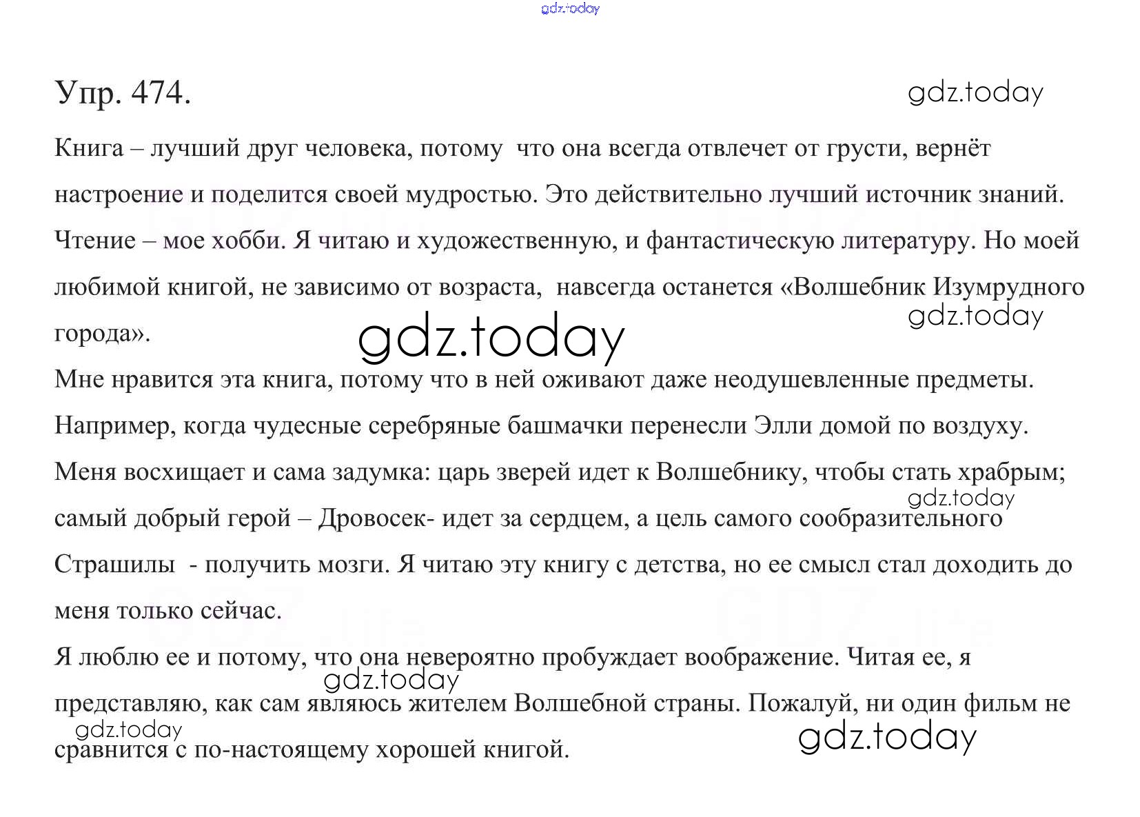 Ответы к Часть 2. Решение к упражнениям 474 Учебнику по Русскому языку для 5 класса Баранов, Ладыженская Просвещение, Просвещение 2016, 2019