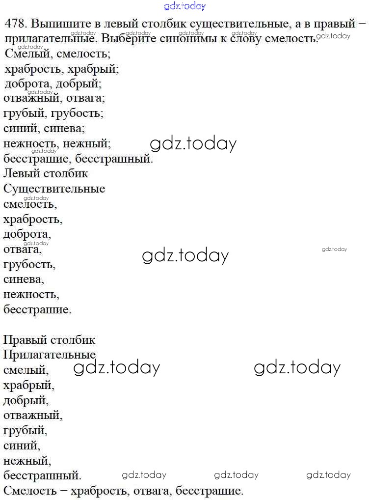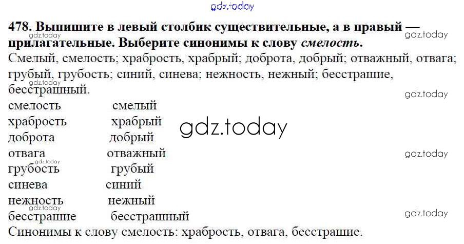Ответы к Часть 2. Решение к упражнениям 478 Учебнику по Русскому языку для 5 класса Баранов, Ладыженская Просвещение, Просвещение 2016, 2019