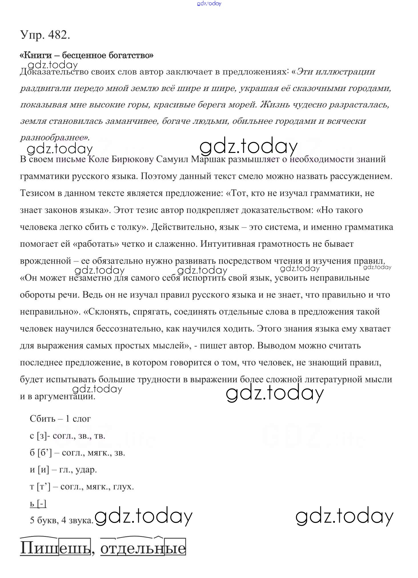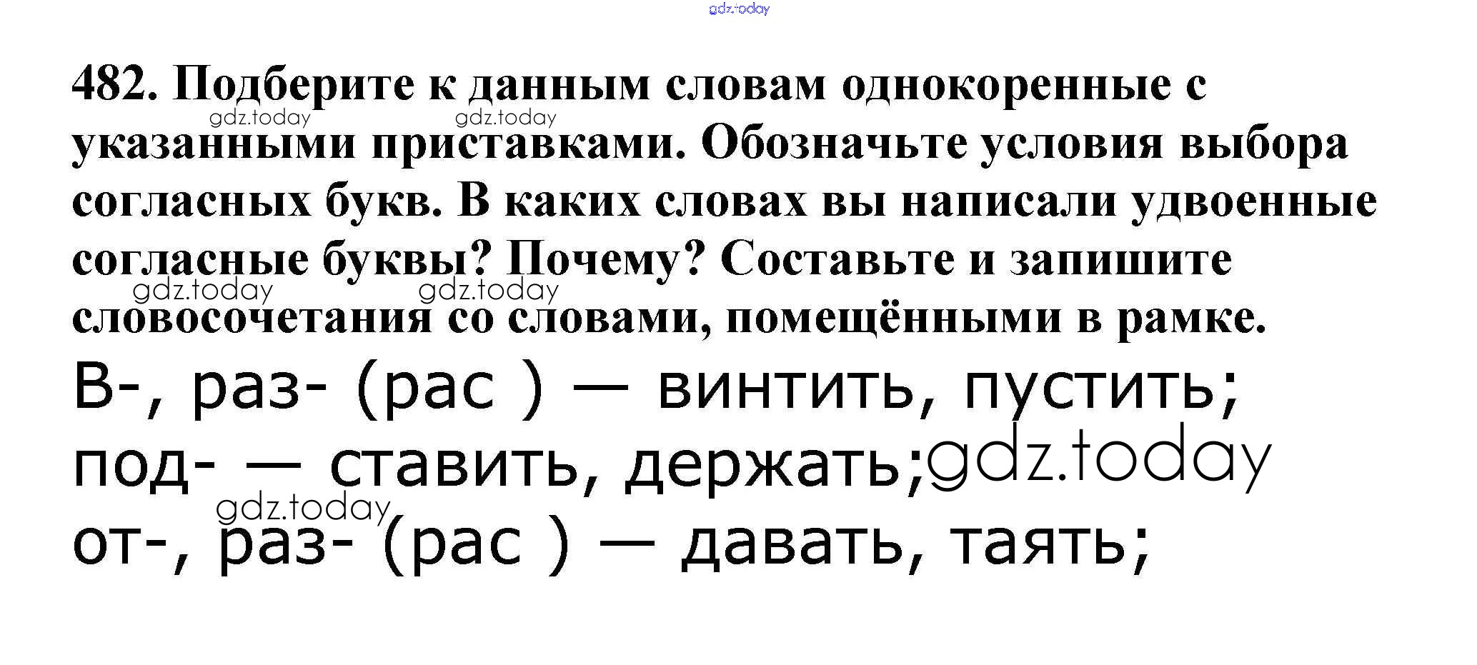 Ответы к Часть 2. Решение к упражнениям 482 Учебнику по Русскому языку для 5 класса Баранов, Ладыженская Просвещение, Просвещение 2016, 2019