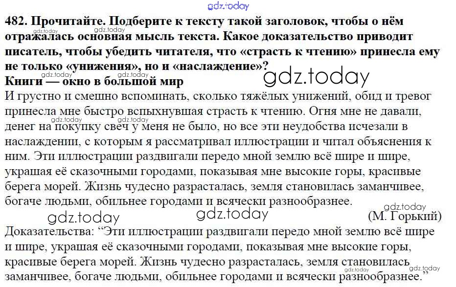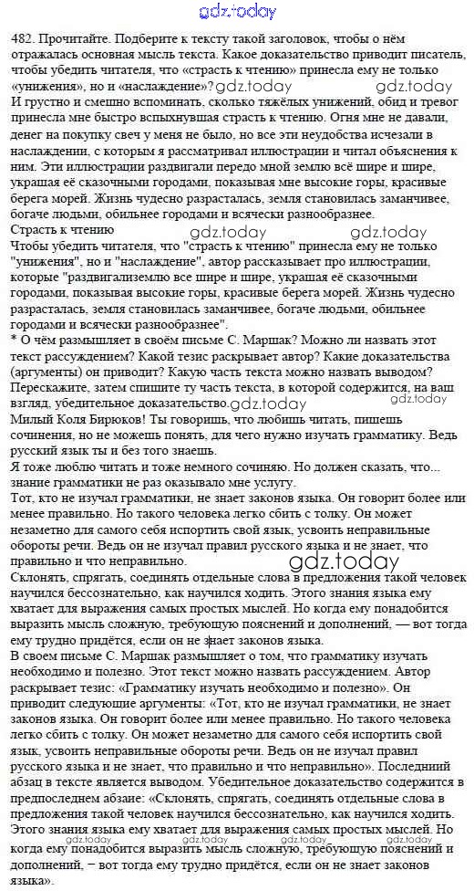 На страницах сайта gdz.today вы найдете учебный и вспомогательный материал, направленный на улучшения знаний школьной программы. ГДЗ - онлайн мир знаний Часть 2. Решение к упражнениям 482 Учебнику по Русскому языку для 5 класса Баранов, Ладыженская Просвещение, Просвещение 2016, 2019