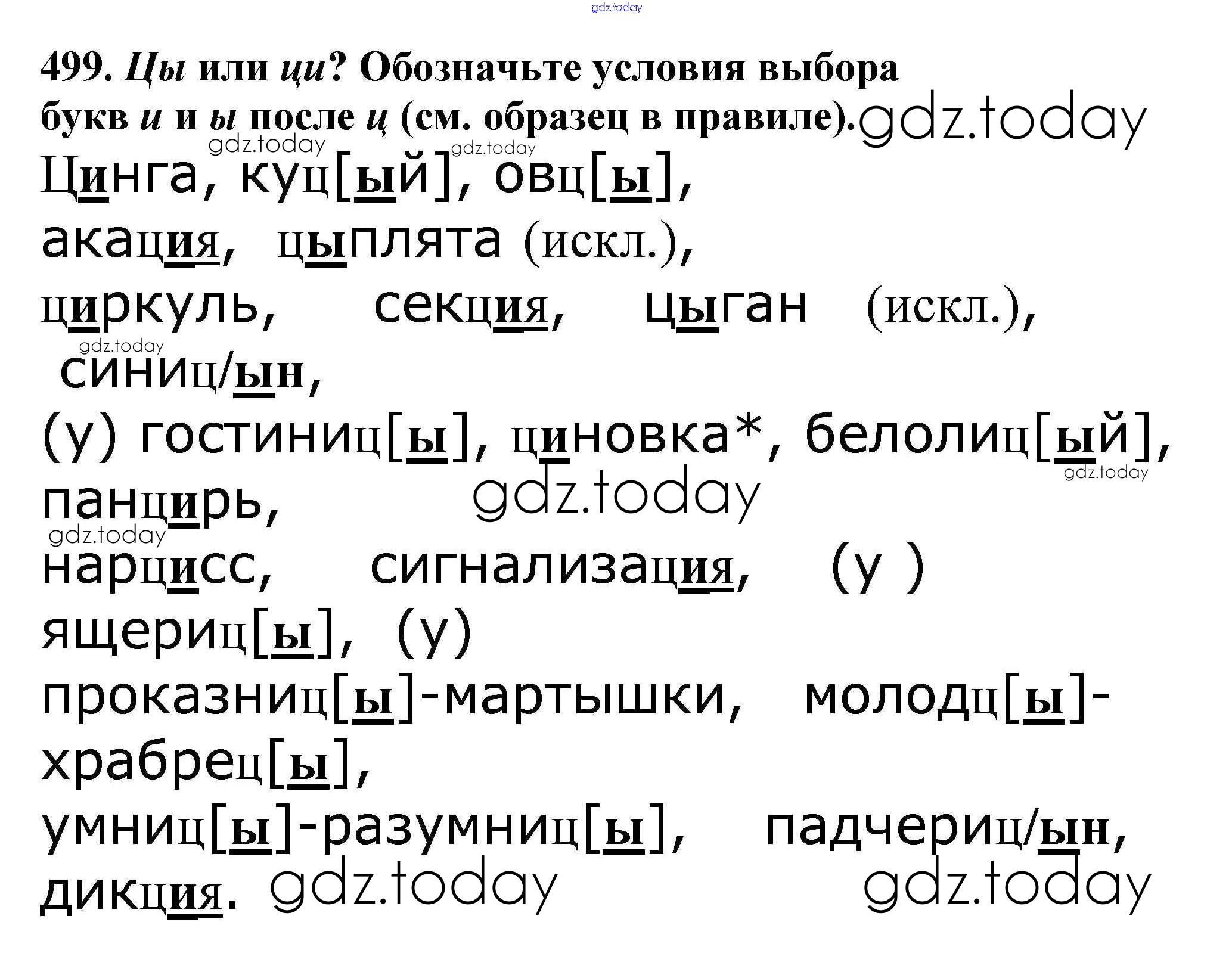 Ответы к Часть 2. Решение к упражнениям 499 Учебнику по Русскому языку для 5 класса Баранов, Ладыженская Просвещение, Просвещение 2016, 2019