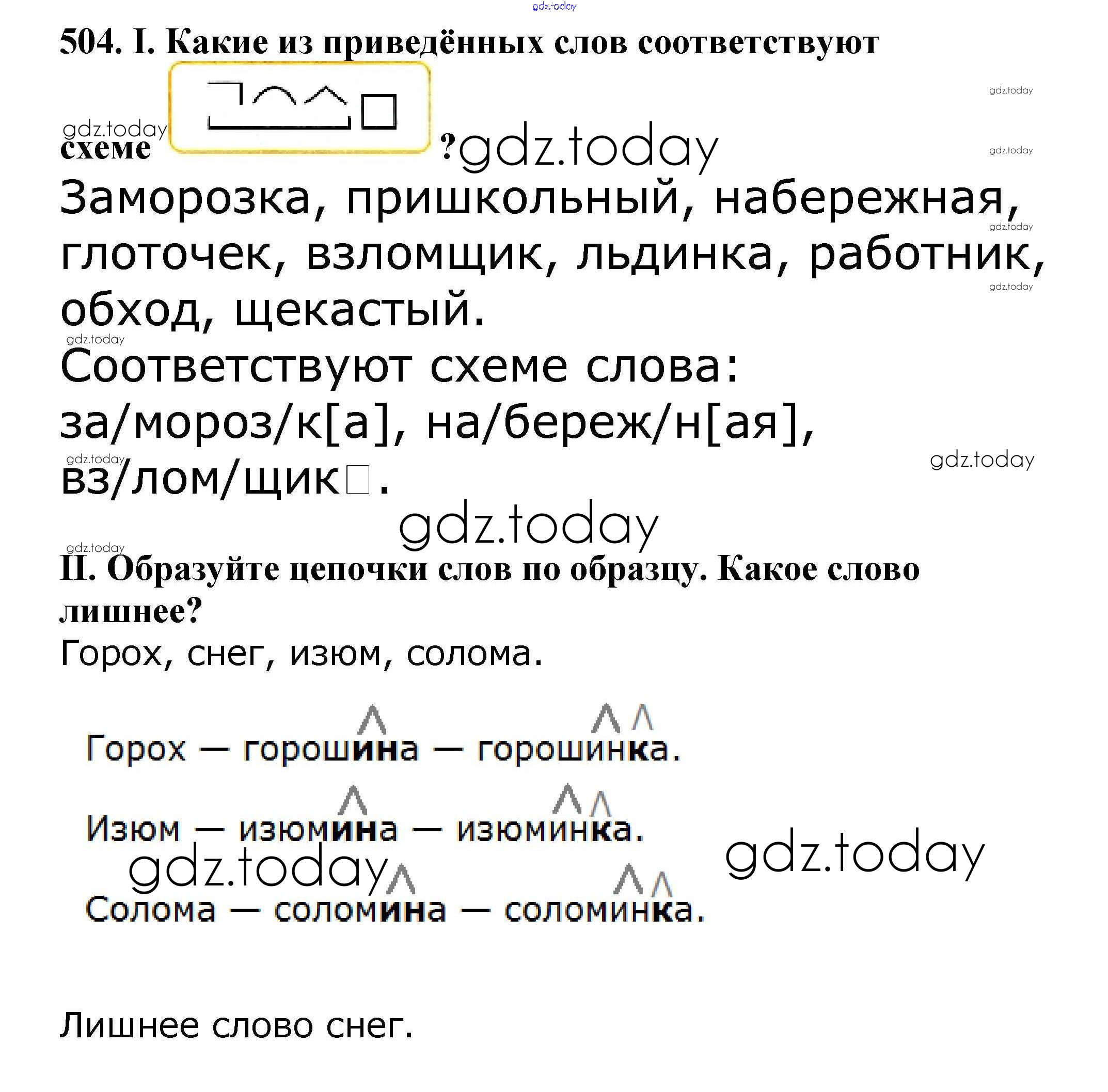 Ответы к Часть 2. Решение к упражнениям 504 Учебнику по Русскому языку для 5 класса Баранов, Ладыженская Просвещение, Просвещение 2016, 2019