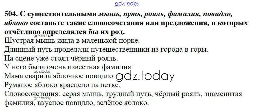 На страницах сайта gdz.today вы найдете учебный и вспомогательный материал, направленный на улучшения знаний школьной программы. ГДЗ - онлайн мир знаний Часть 2. Решение к упражнениям 504 Учебнику по Русскому языку для 5 класса Баранов, Ладыженская Просвещение, Просвещение 2016, 2019