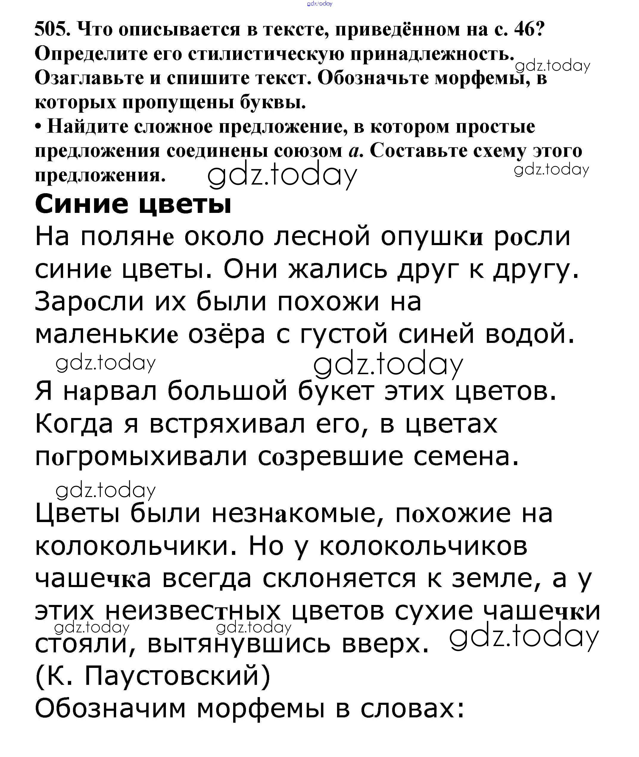 На страницах сайта gdz.today вы найдете учебный и вспомогательный материал, направленный на улучшения знаний школьной программы. ГДЗ - онлайн мир знаний Часть 2. Решение к упражнениям 505 Учебнику по Русскому языку для 5 класса Баранов, Ладыженская Просвещение, Просвещение 2016, 2019