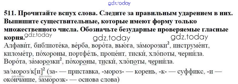 Ответы к Часть 2. Решение к упражнениям 511 Учебнику по Русскому языку для 5 класса Баранов, Ладыженская Просвещение, Просвещение 2016, 2019