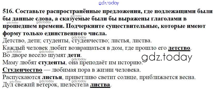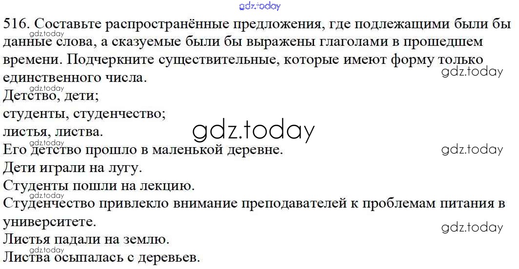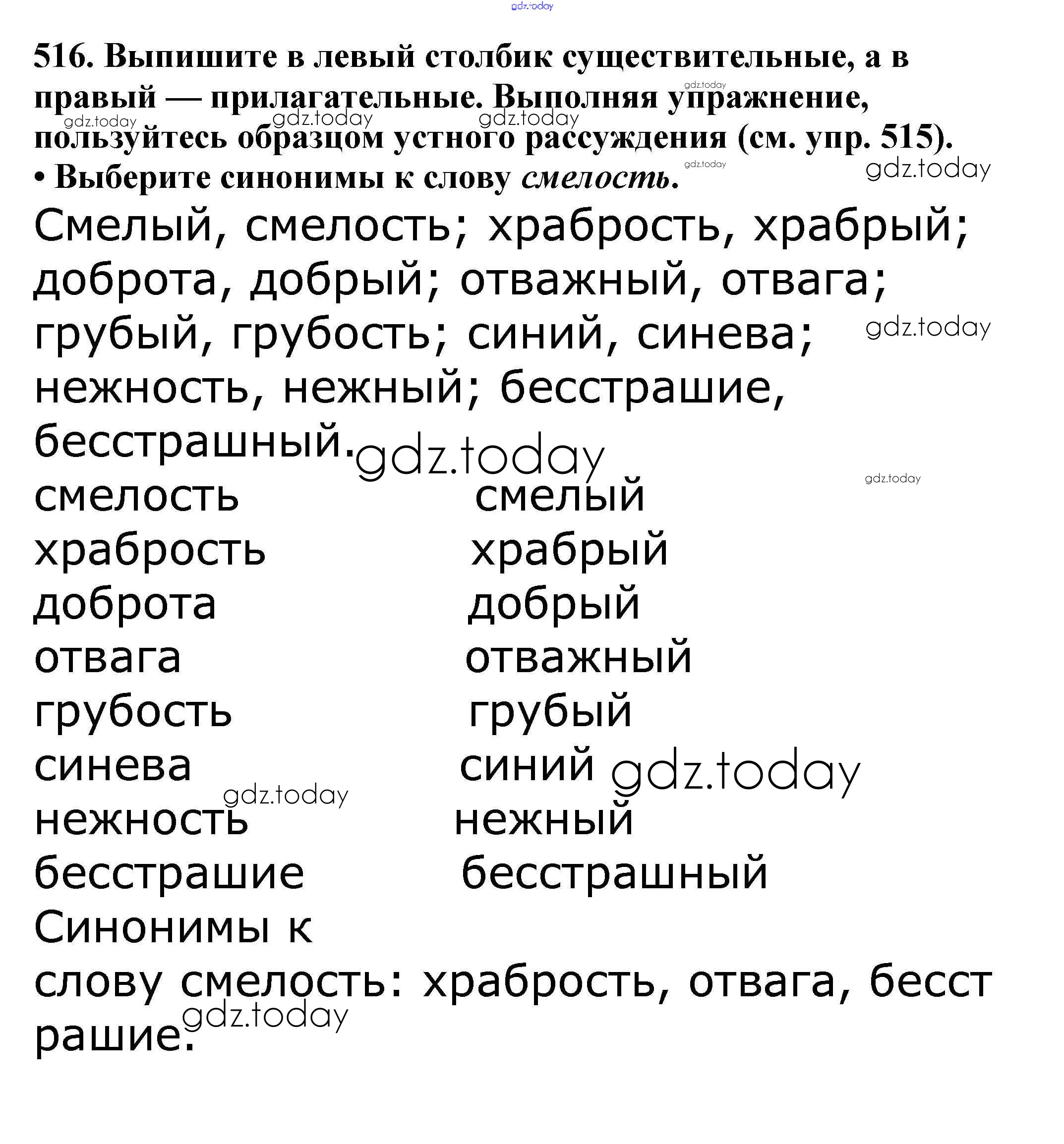 Ответы к Часть 2. Решение к упражнениям 516 Учебнику по Русскому языку для 5 класса Баранов, Ладыженская Просвещение, Просвещение 2016, 2019