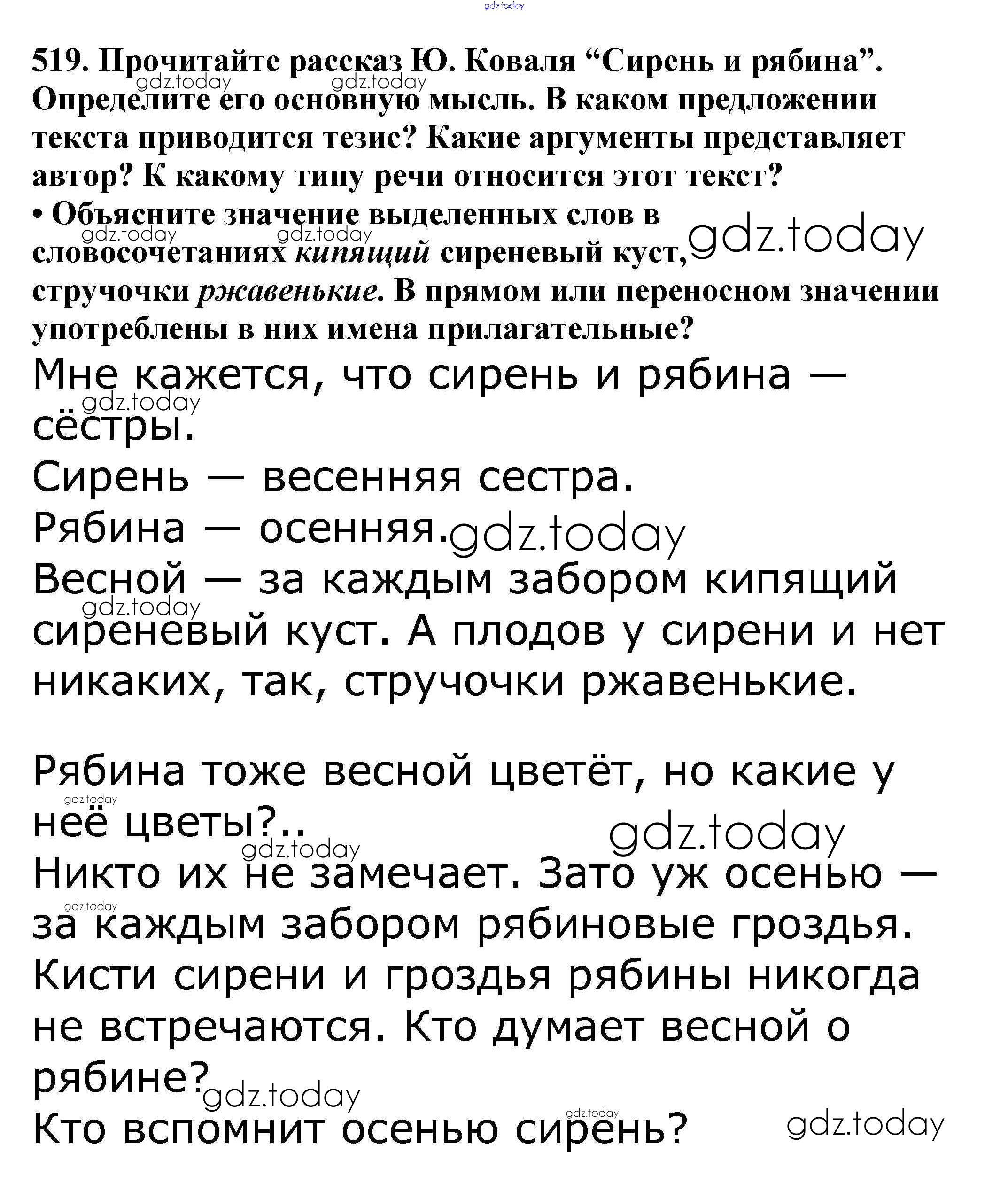 Ответы к Часть 2. Решение к упражнениям 519 Учебнику по Русскому языку для 5 класса Баранов, Ладыженская Просвещение, Просвещение 2016, 2019