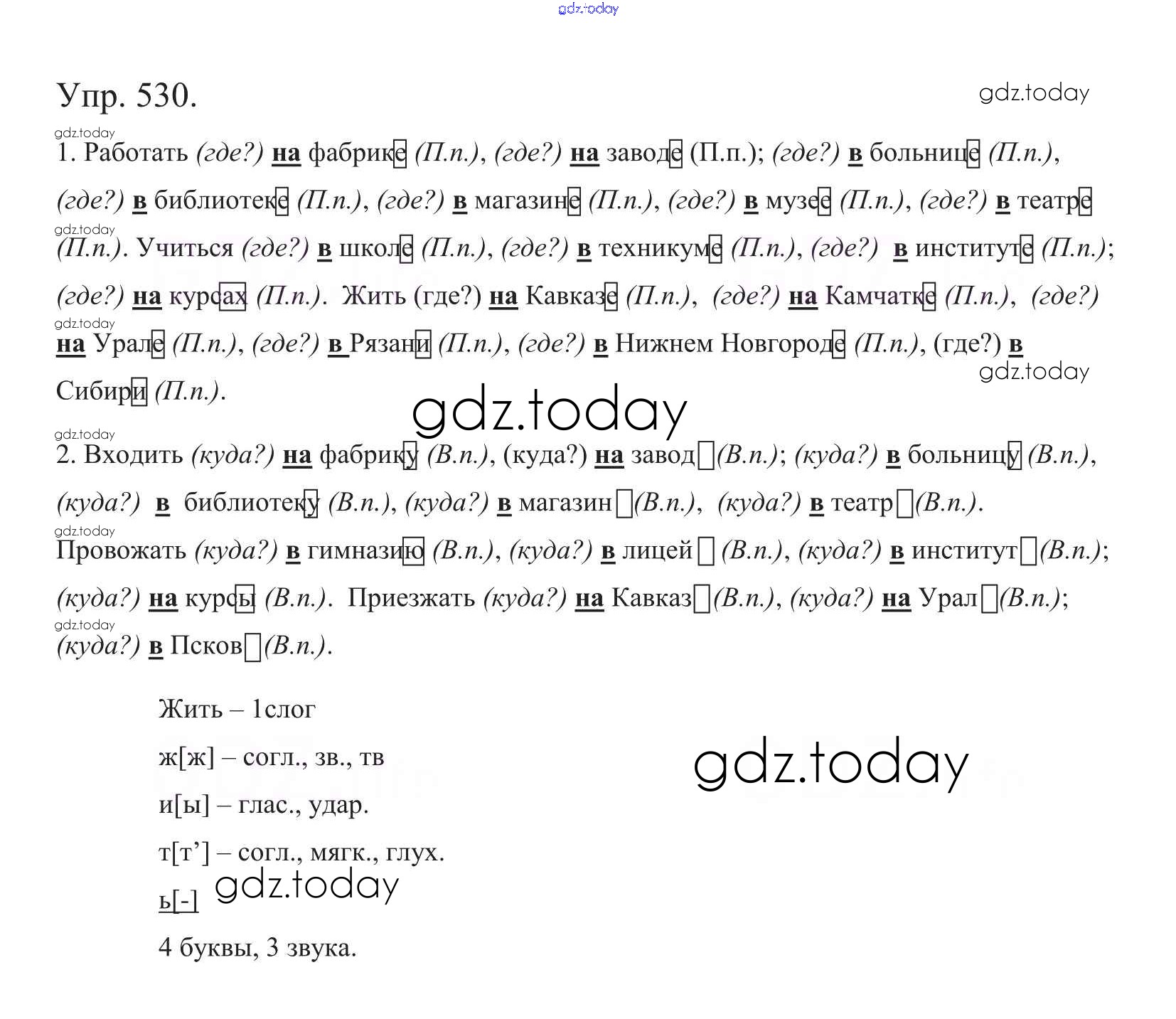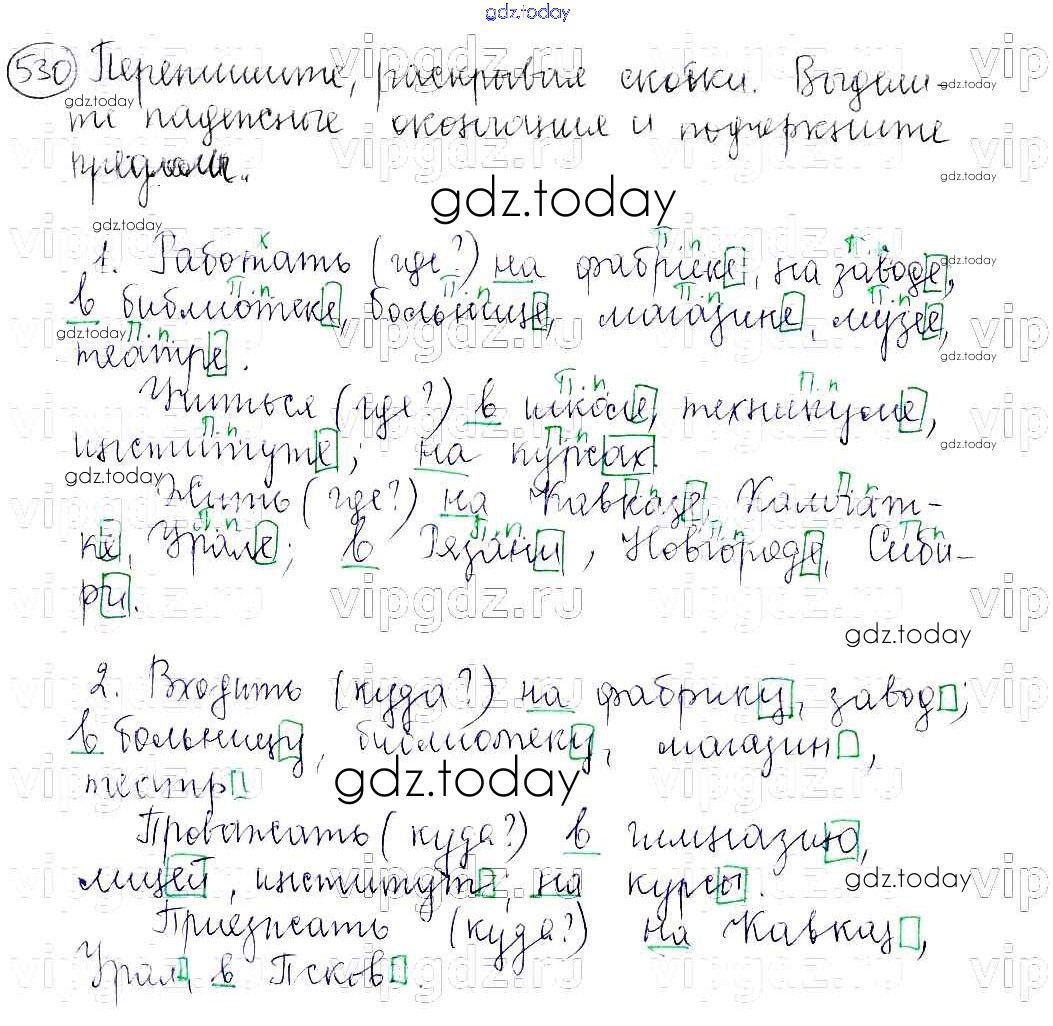 Ответы к Часть 2. Решение к упражнениям 530 Учебнику по Русскому языку для 5 класса Баранов, Ладыженская Просвещение, Просвещение 2016, 2019