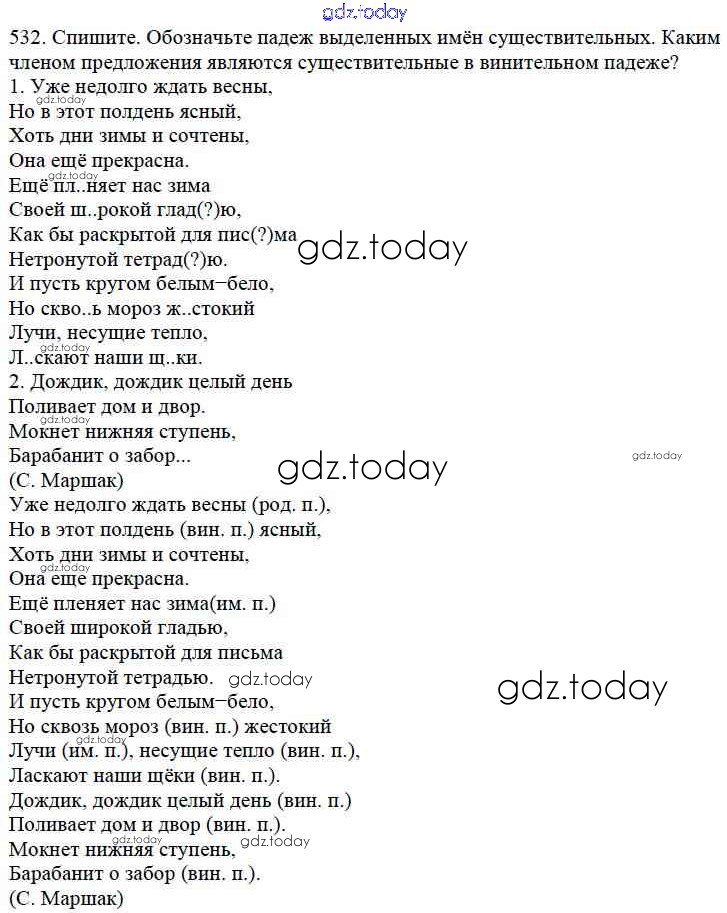 На страницах сайта gdz.today вы найдете учебный и вспомогательный материал, направленный на улучшения знаний школьной программы. ГДЗ - онлайн мир знаний Часть 2. Решение к упражнениям 532 Учебнику по Русскому языку для 5 класса Баранов, Ладыженская Просвещение, Просвещение 2016, 2019