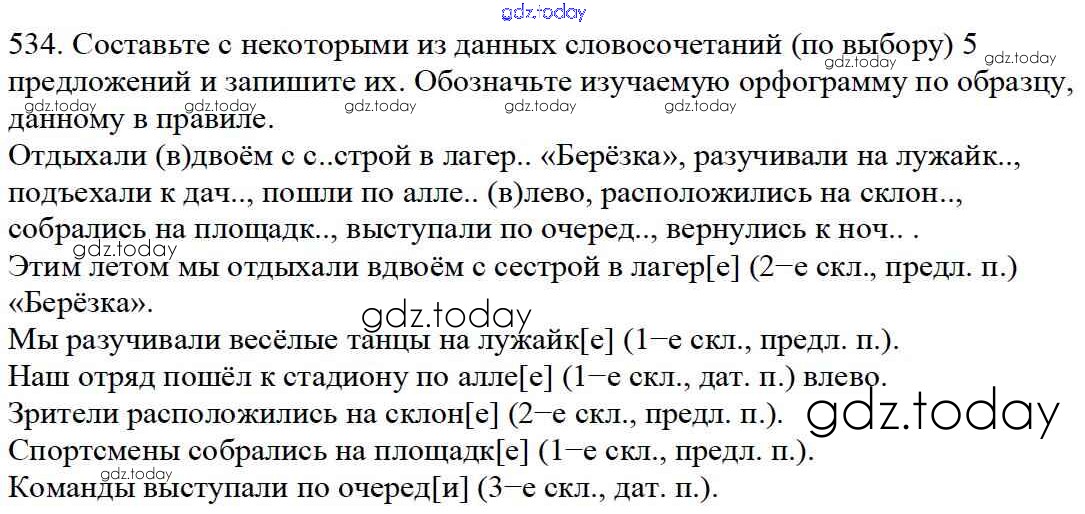 На страницах сайта gdz.today вы найдете учебный и вспомогательный материал, направленный на улучшения знаний школьной программы. ГДЗ - онлайн мир знаний Часть 2. Решение к упражнениям 534 Учебнику по Русскому языку для 5 класса Баранов, Ладыженская Просвещение, Просвещение 2016, 2019
